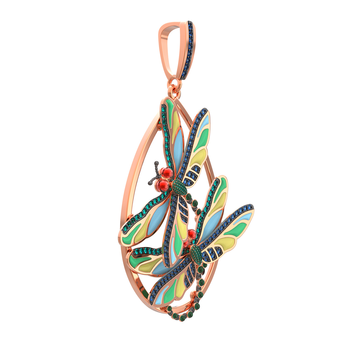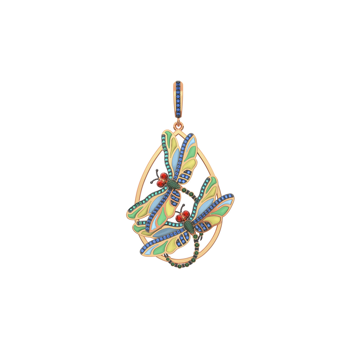 Подвеска из золота c сапфиром, изумрудом и эмалью