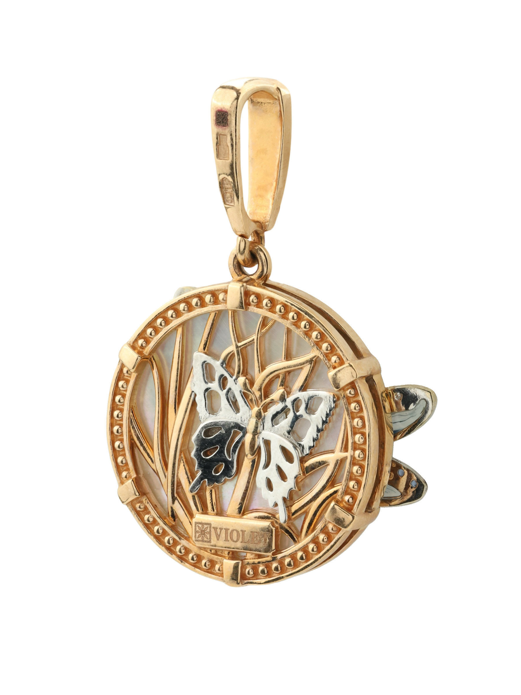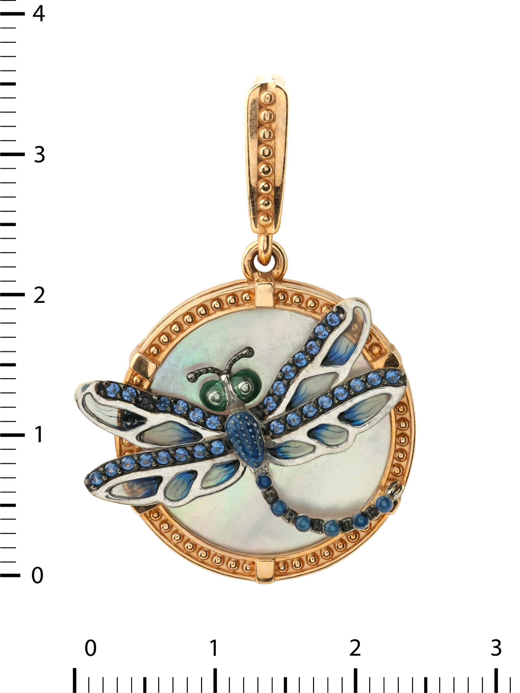 Подвеска из золота c сапфиром, эмалью и перламутром