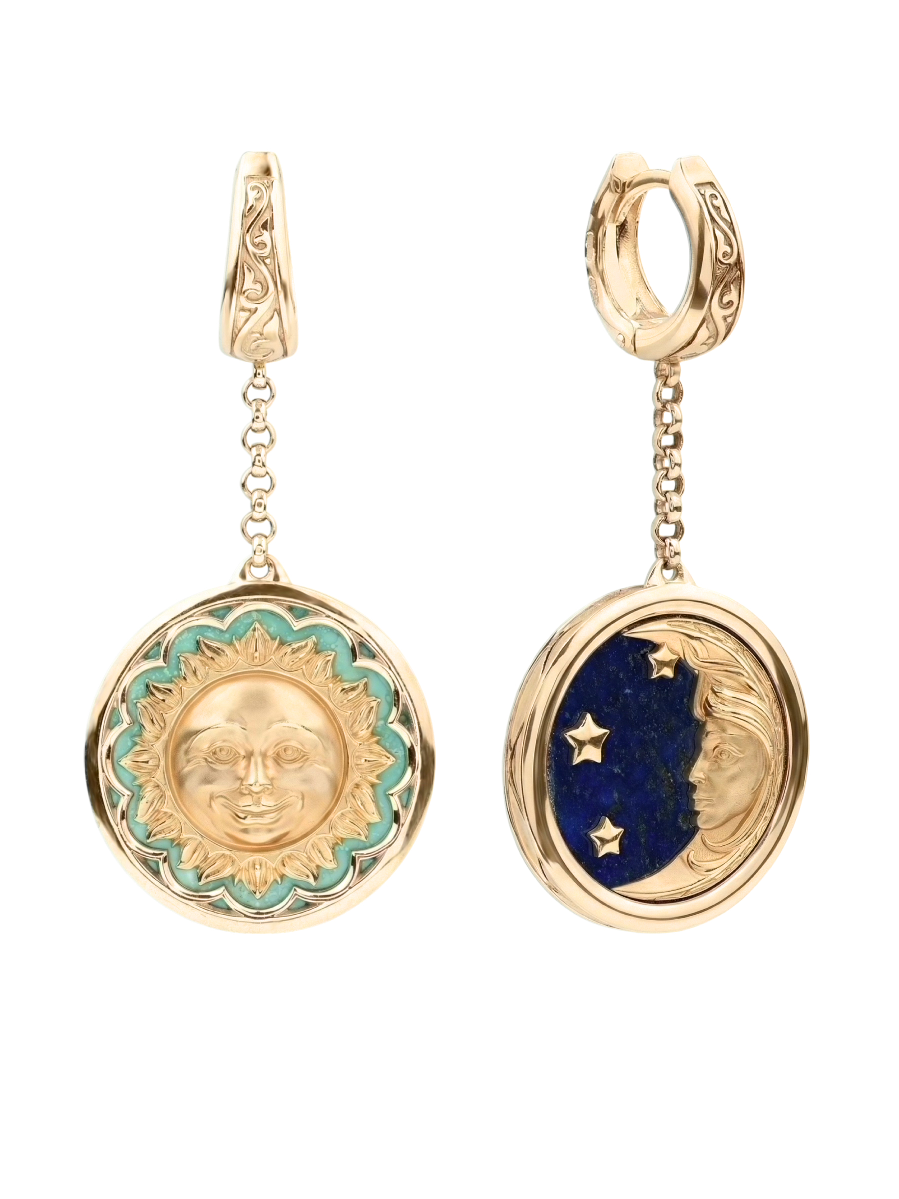 Серьги из золота c бирюзой и лазуритом
