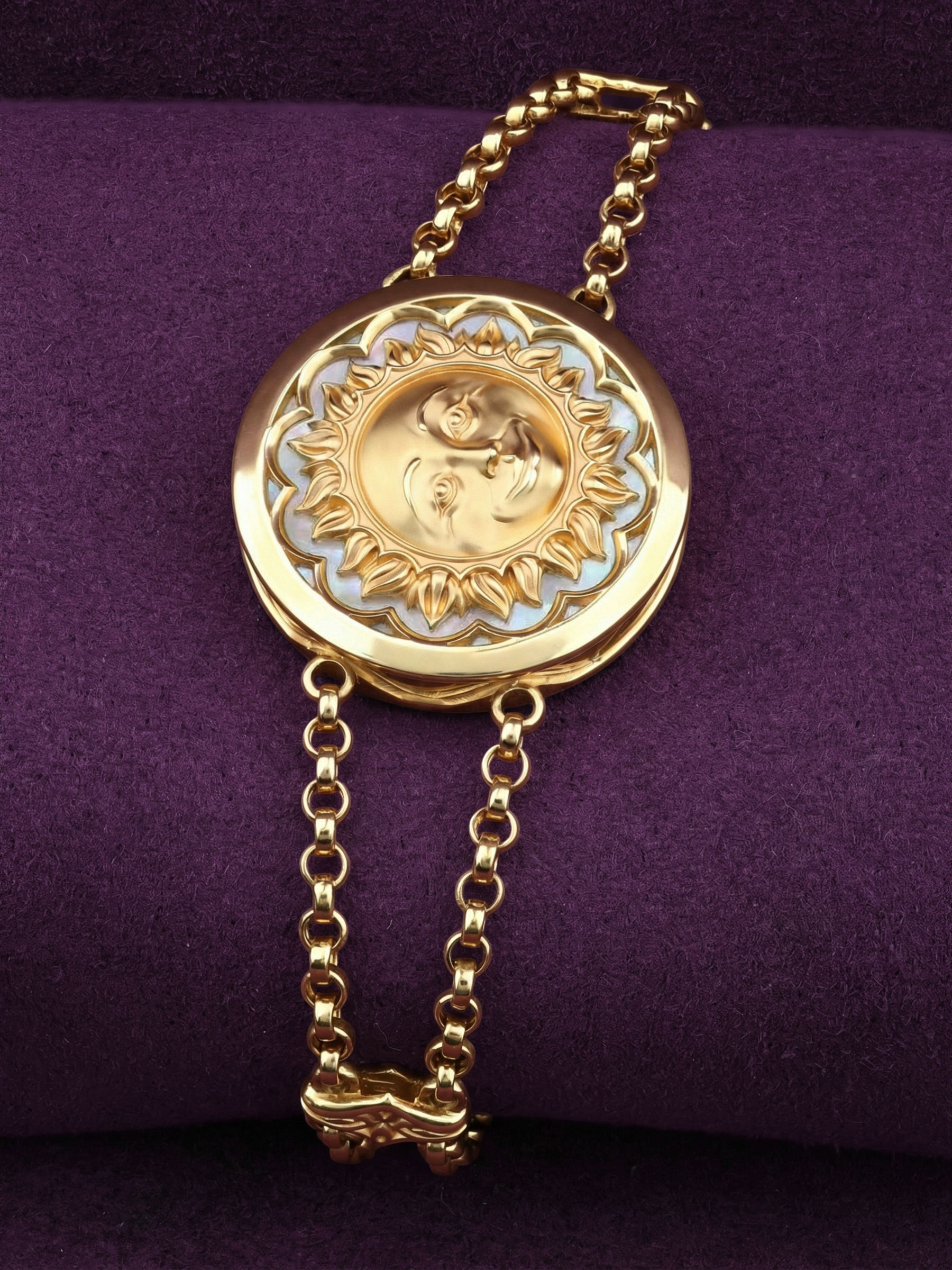 Браслет из лимонного золота c ониксом и перламутром