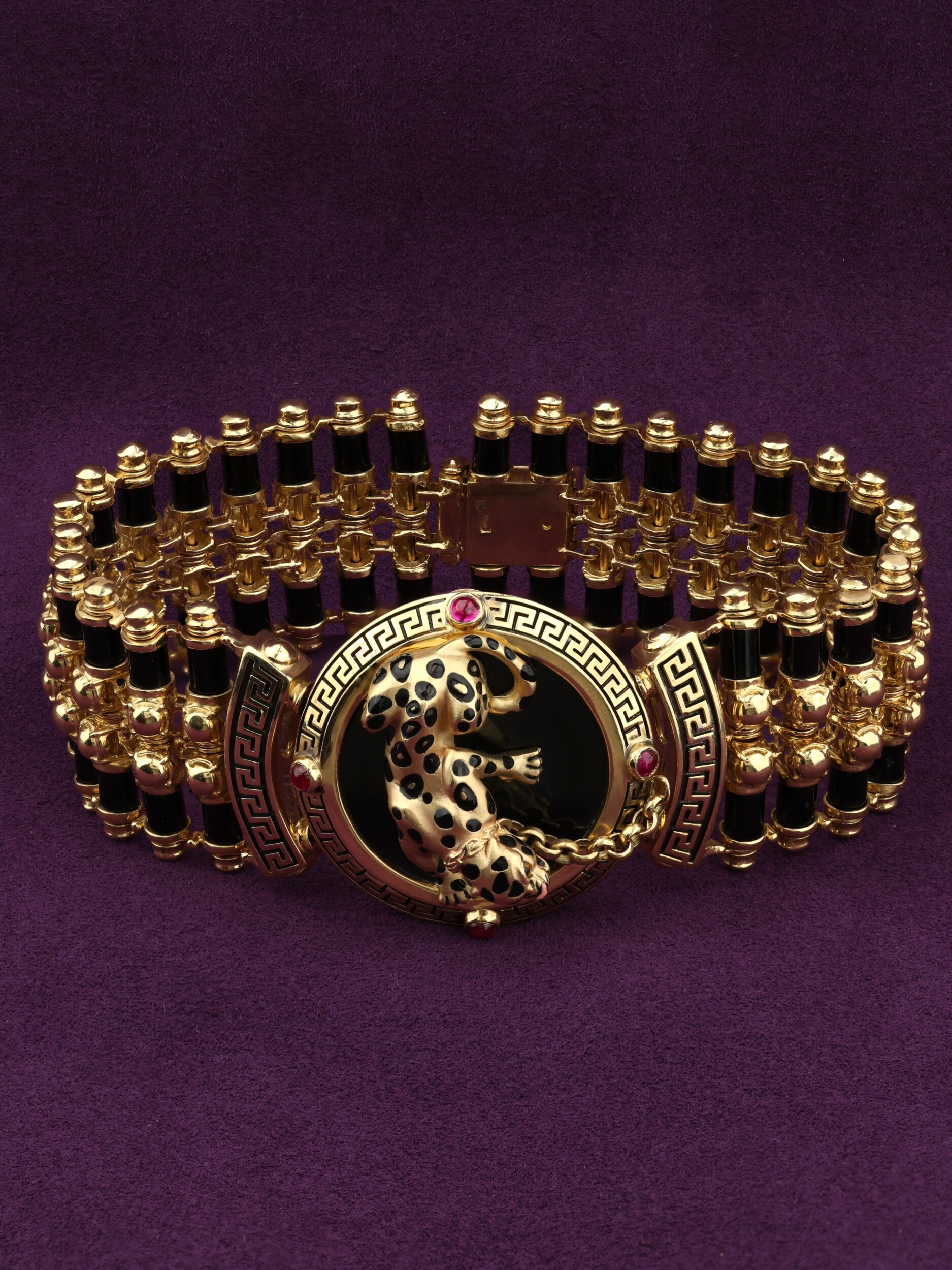 Браслет из лимонного золота c эмалью, ониксом и рубином