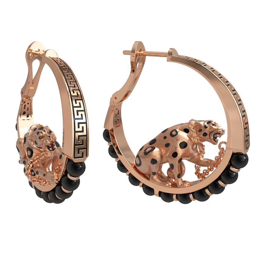 Серьги из золота c эмалью и ониксом