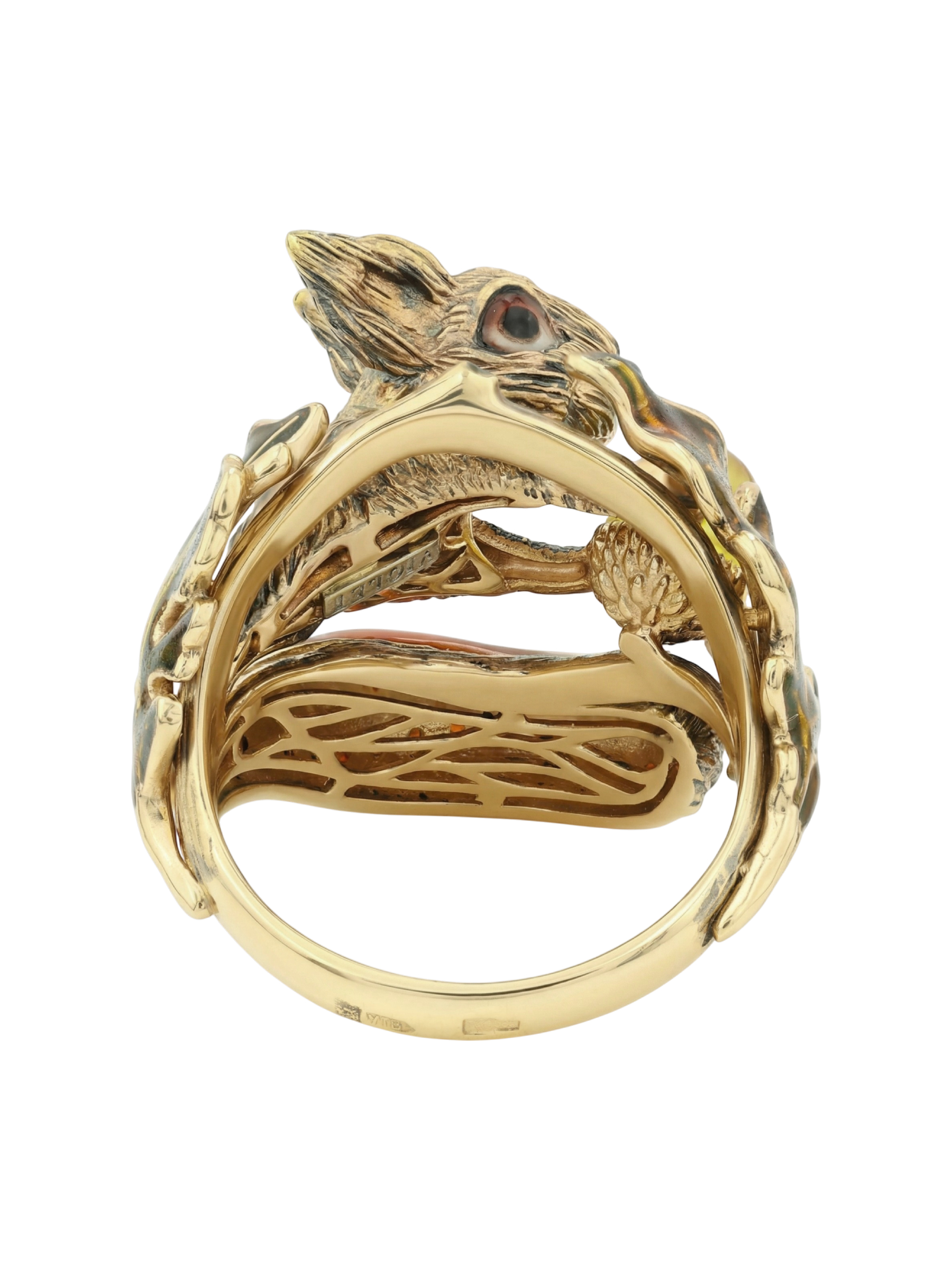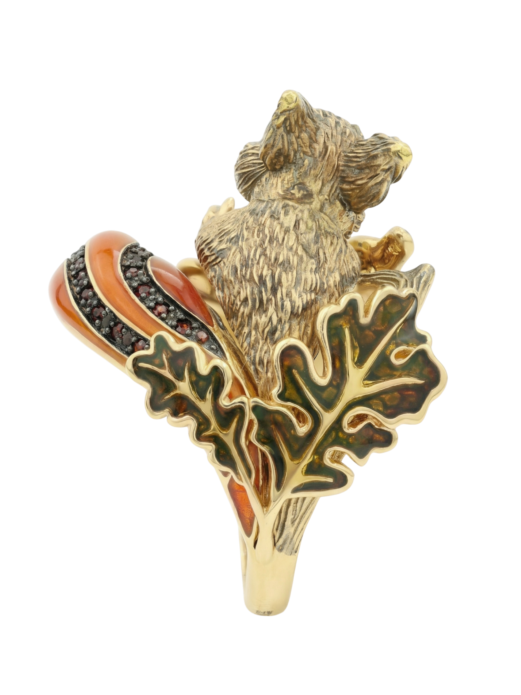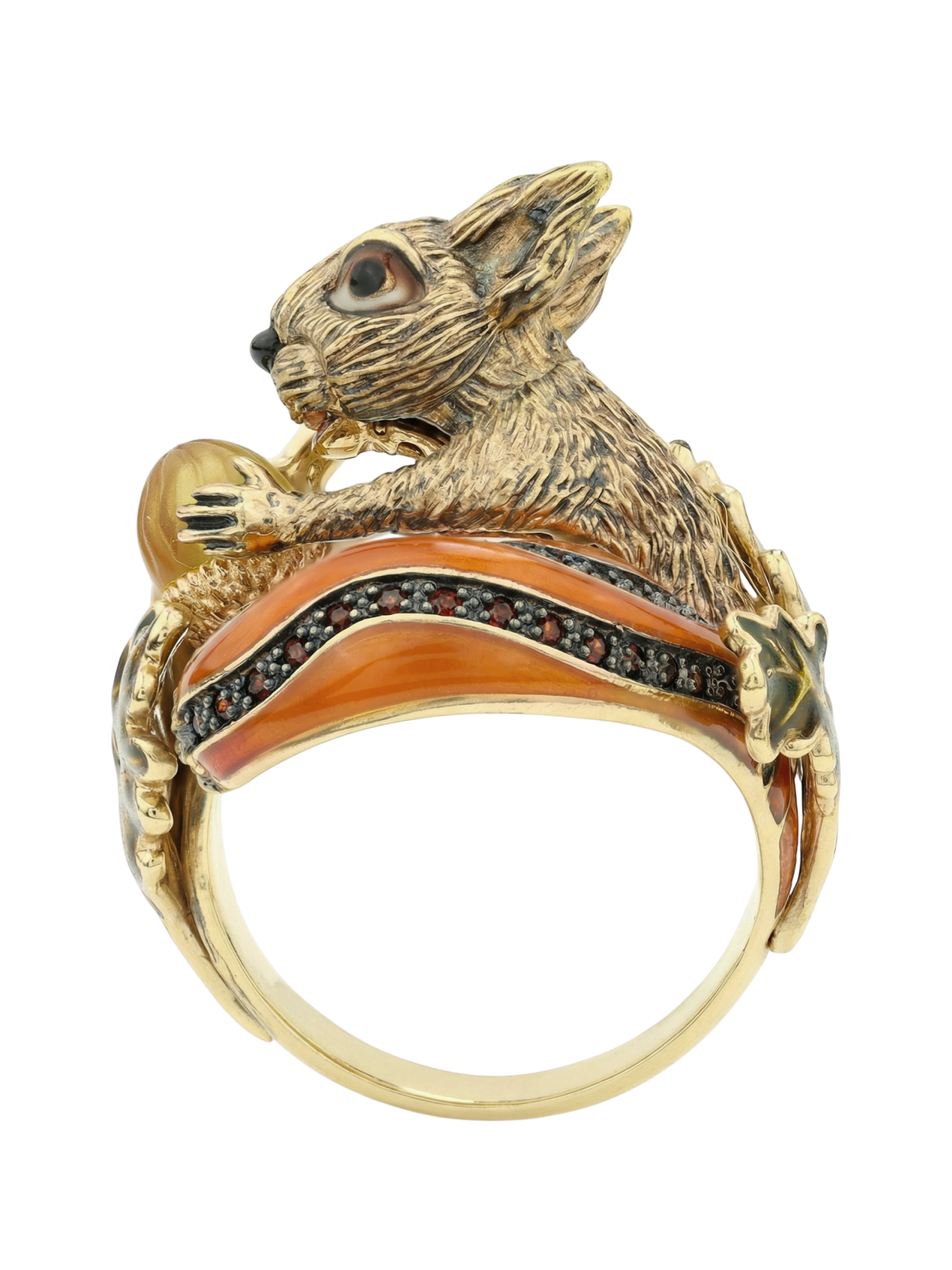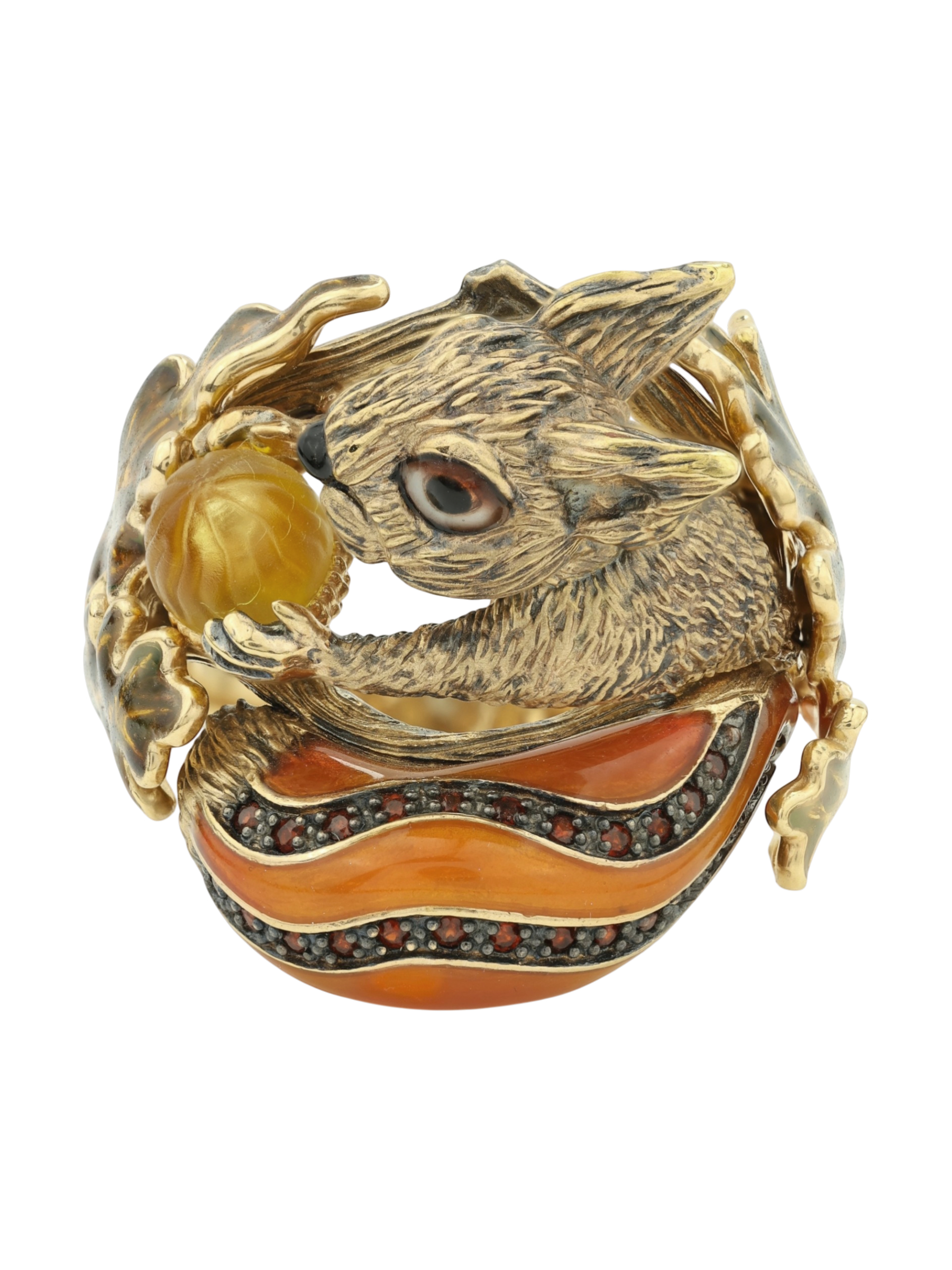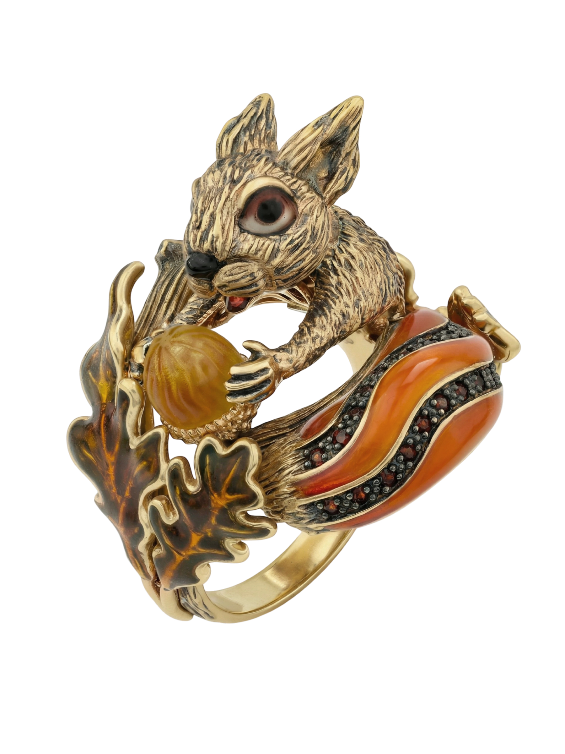 Кольцо из лимонного золота c эмалью, гранатом и янтарём