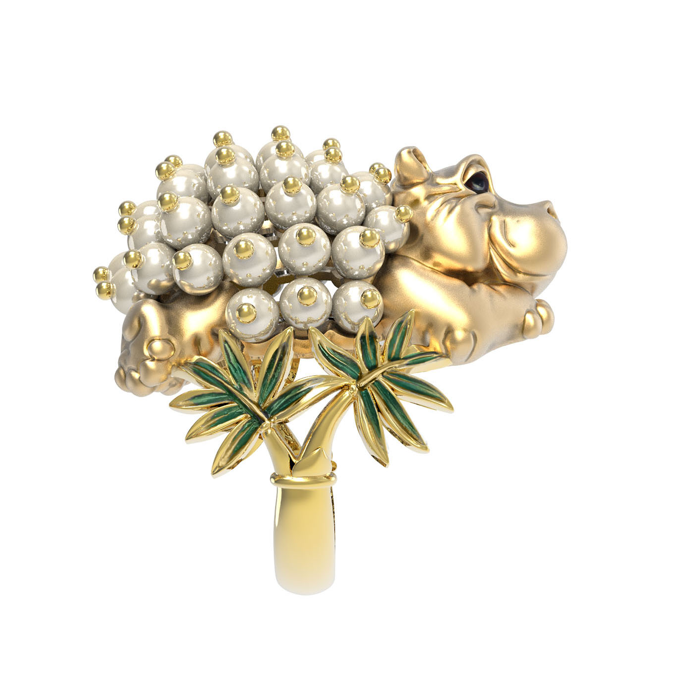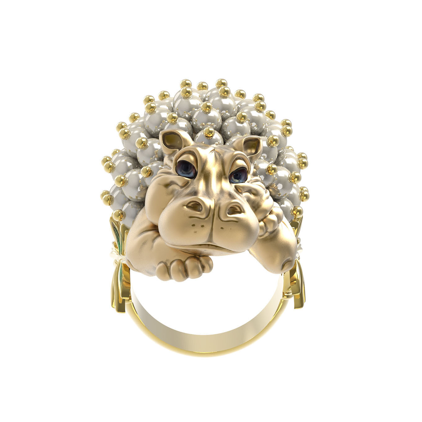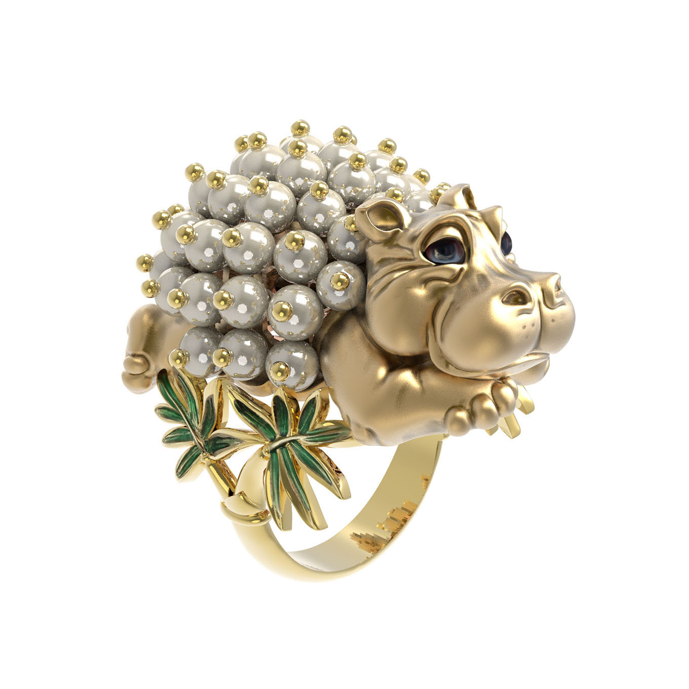 Кольцо из лимонного золота c эмалью и жемчугом