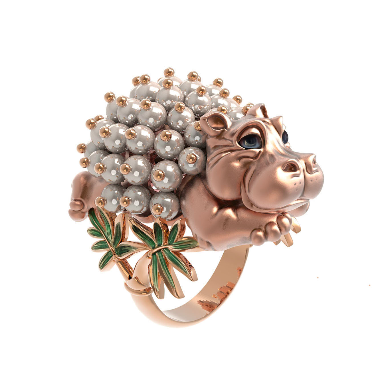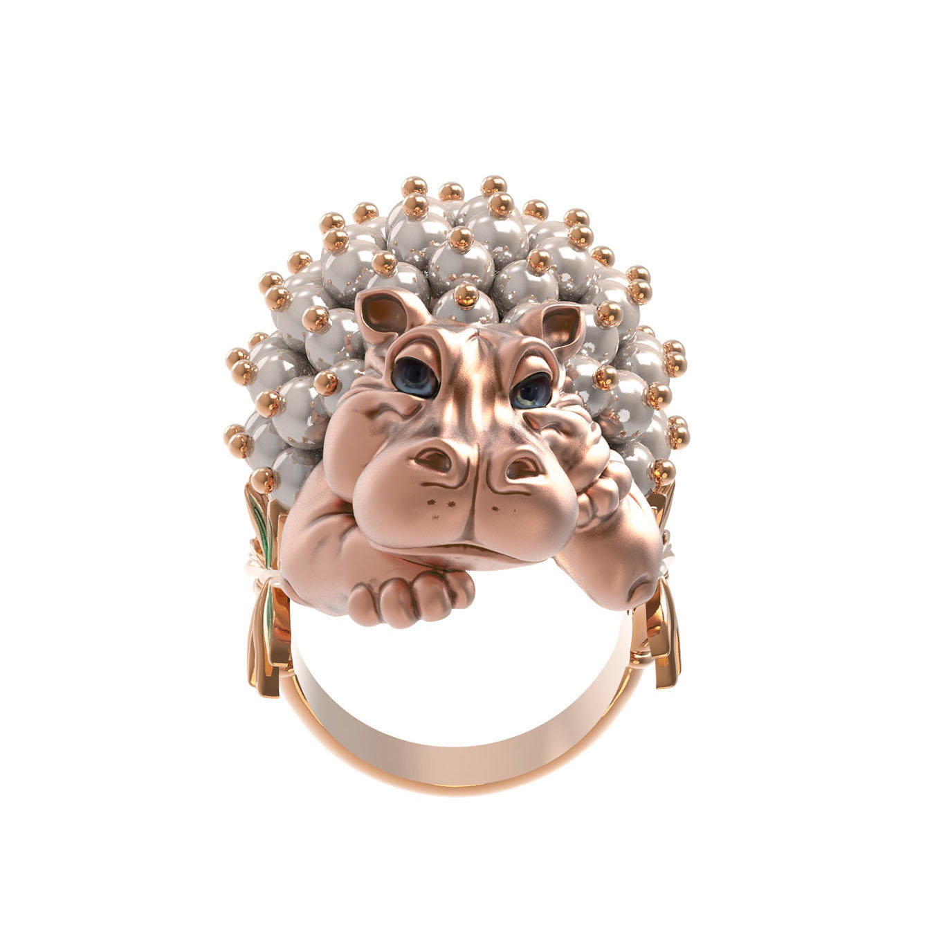Кольцо из золота c эмалью и жемчугом