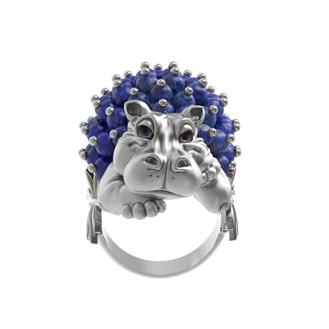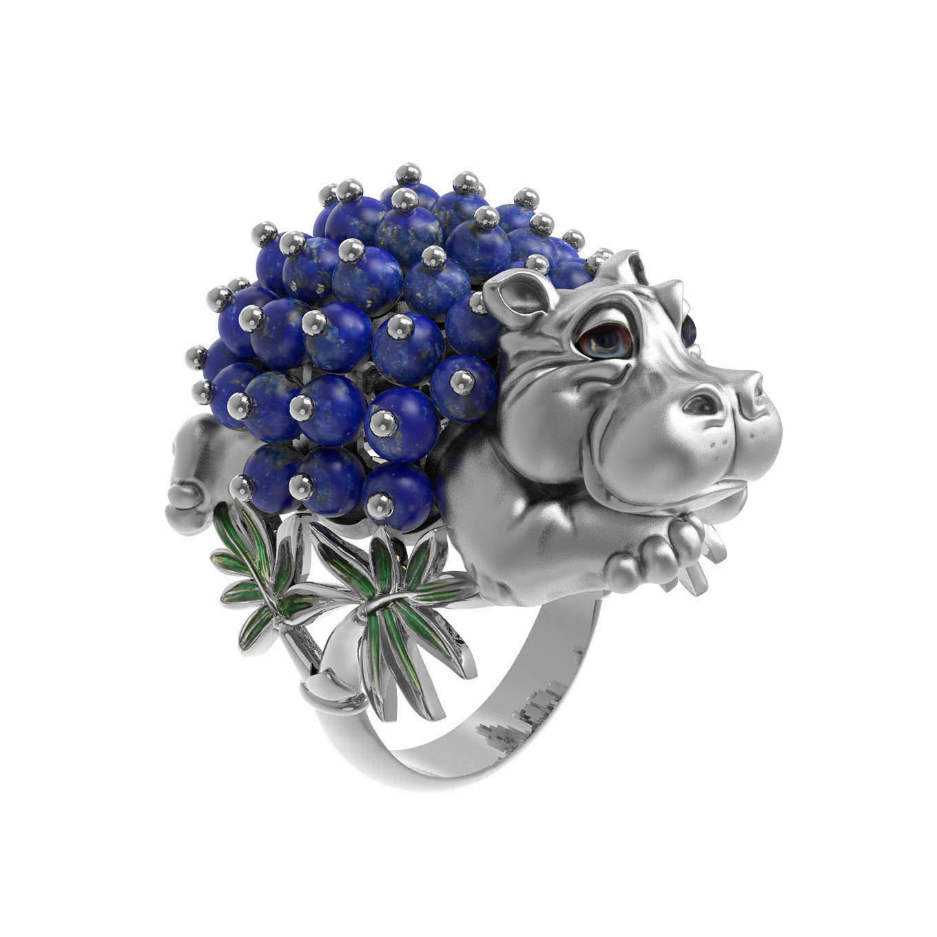 Кольцо из белого золота c эмалью и лазуритом