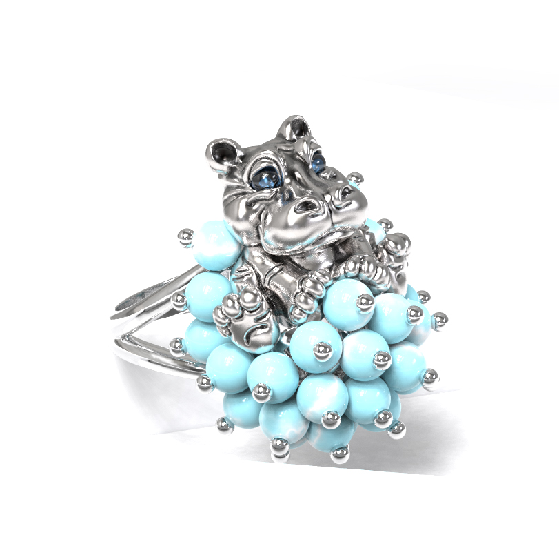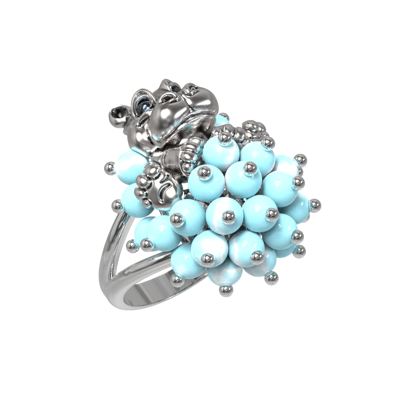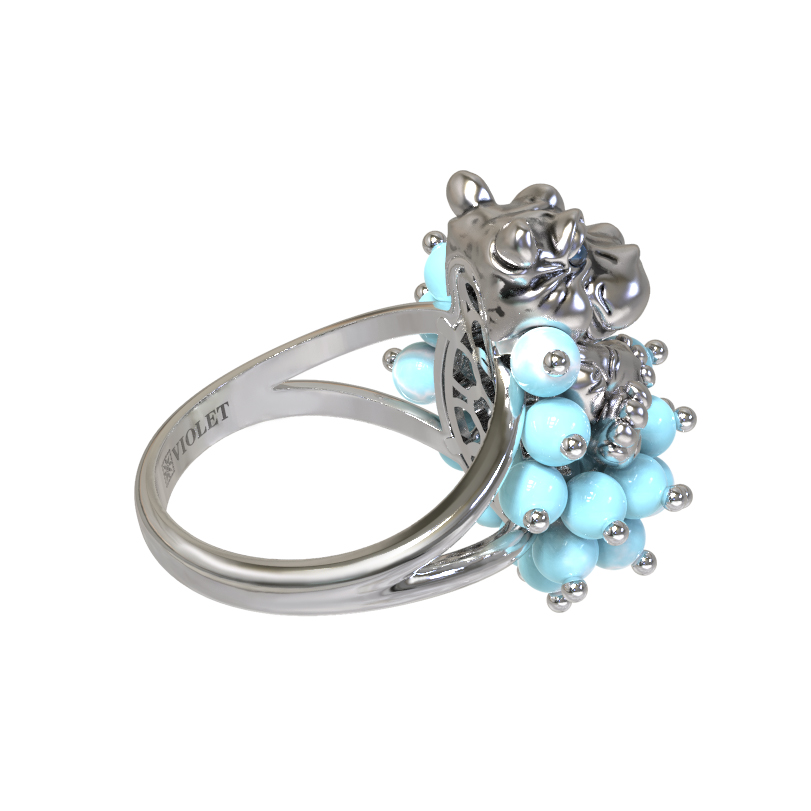 Кольцо из белого золота c эмалью и бирюзой