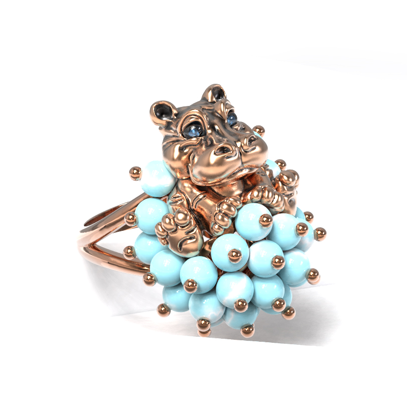 Кольцо из золота c эмалью и бирюзой