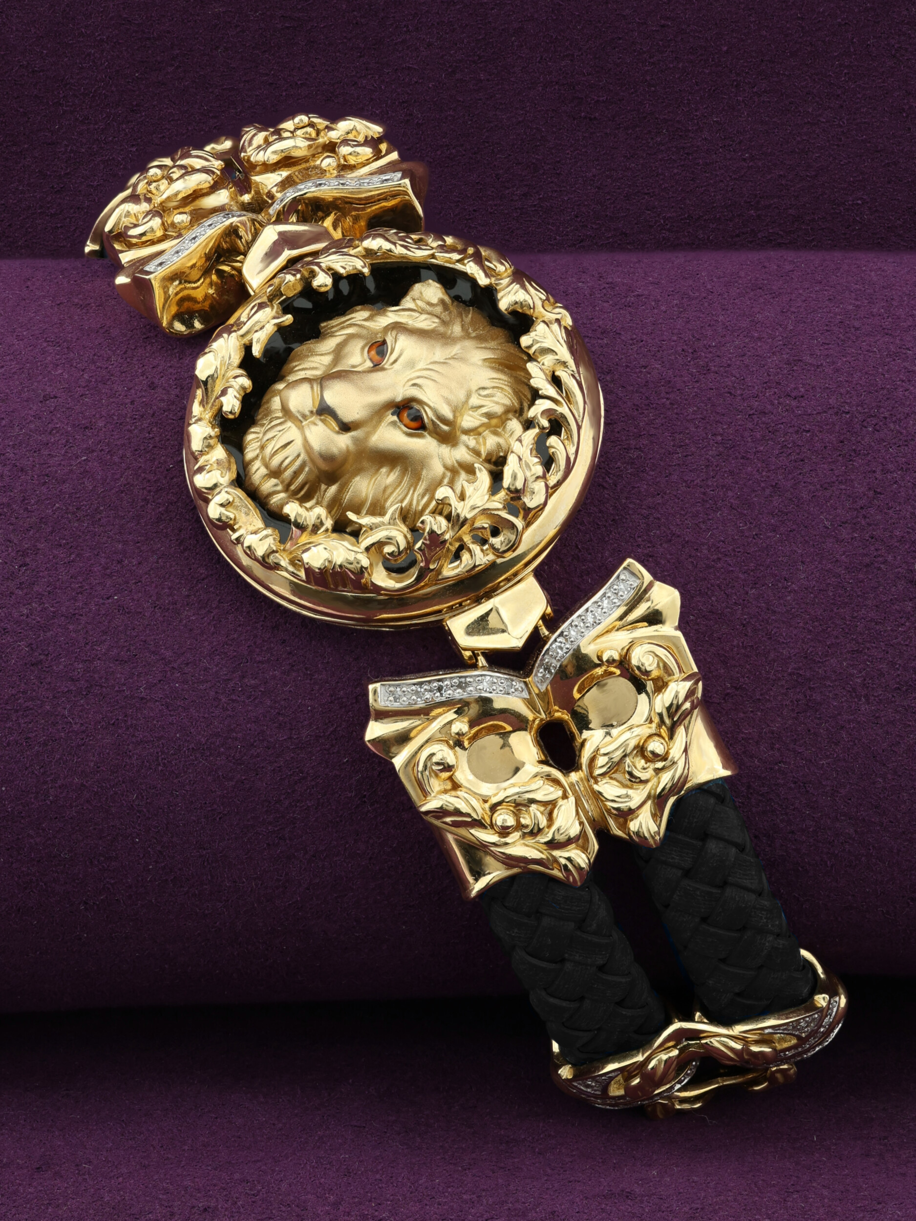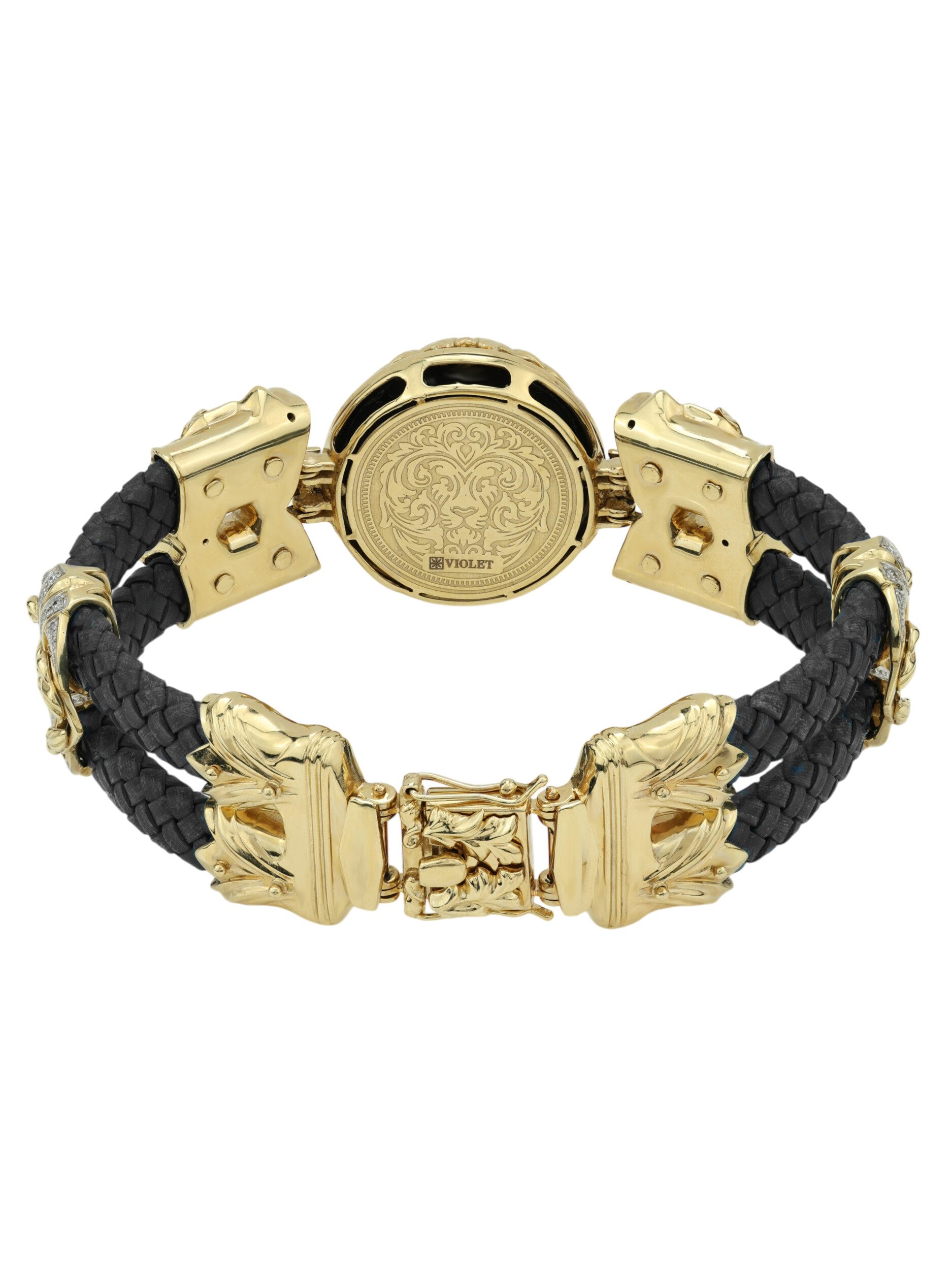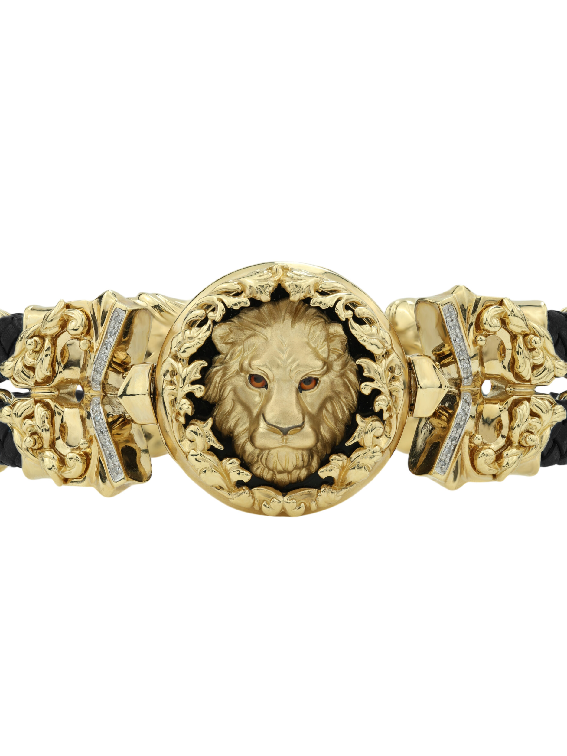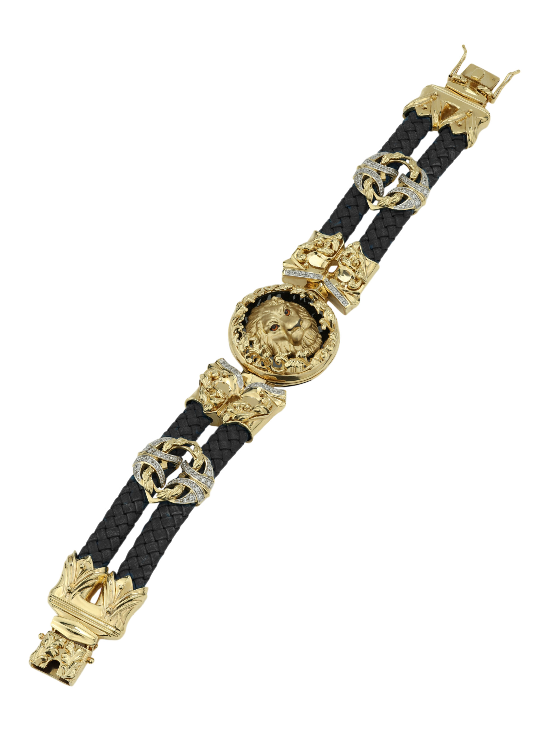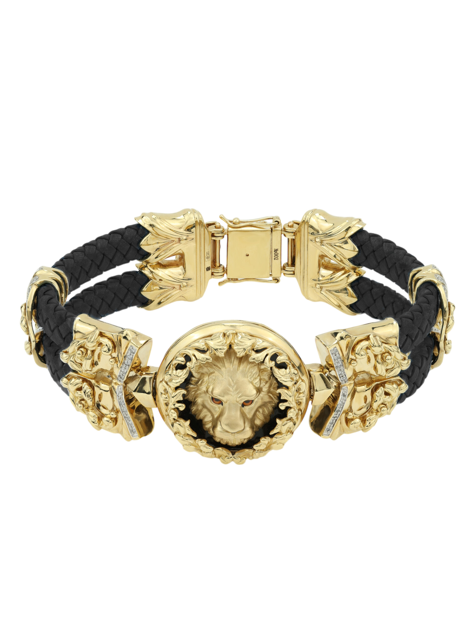 Браслет из лимонного золота c эмалью, бриллиантами, шнурком и ониксом