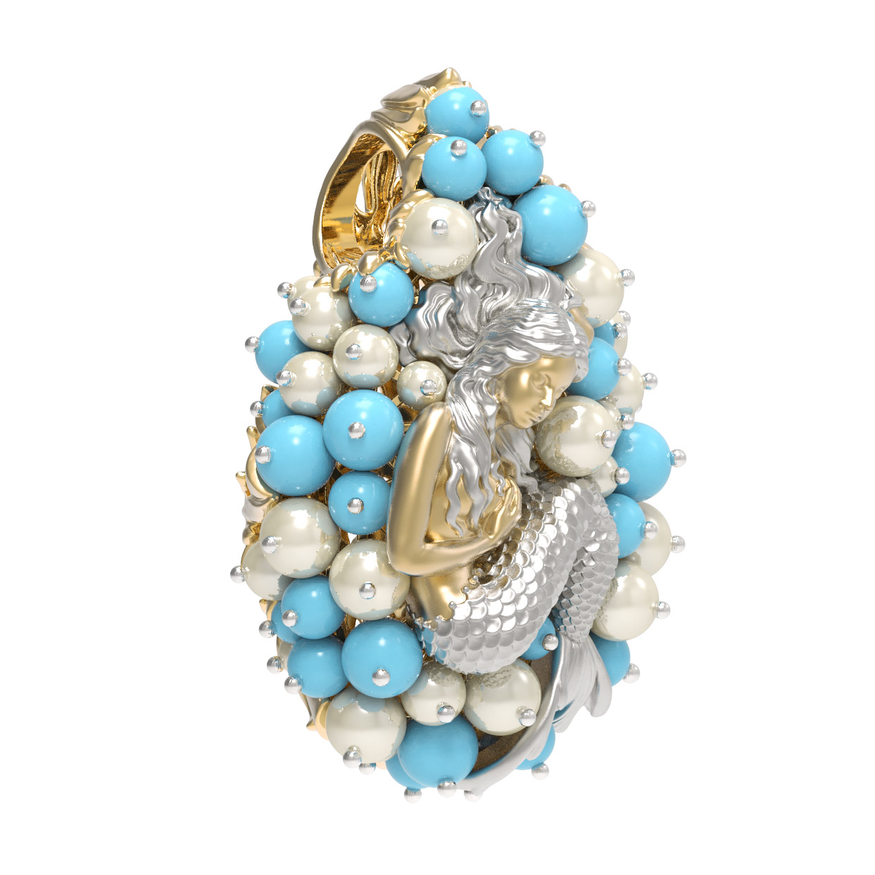Подвеска из лимонного золота c жемчугом и бирюзой