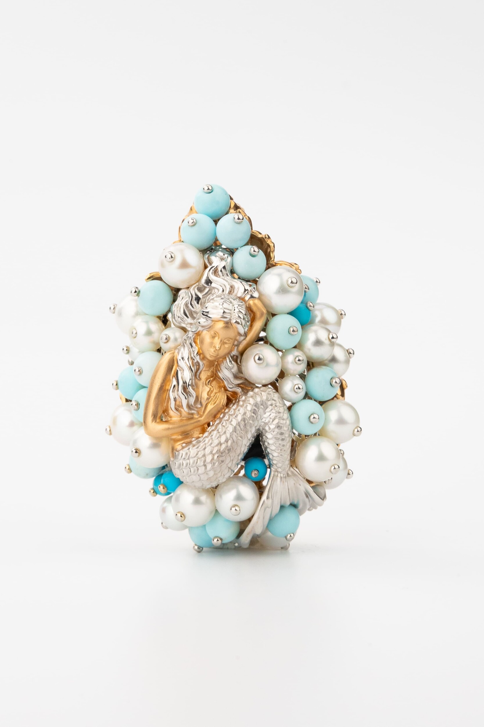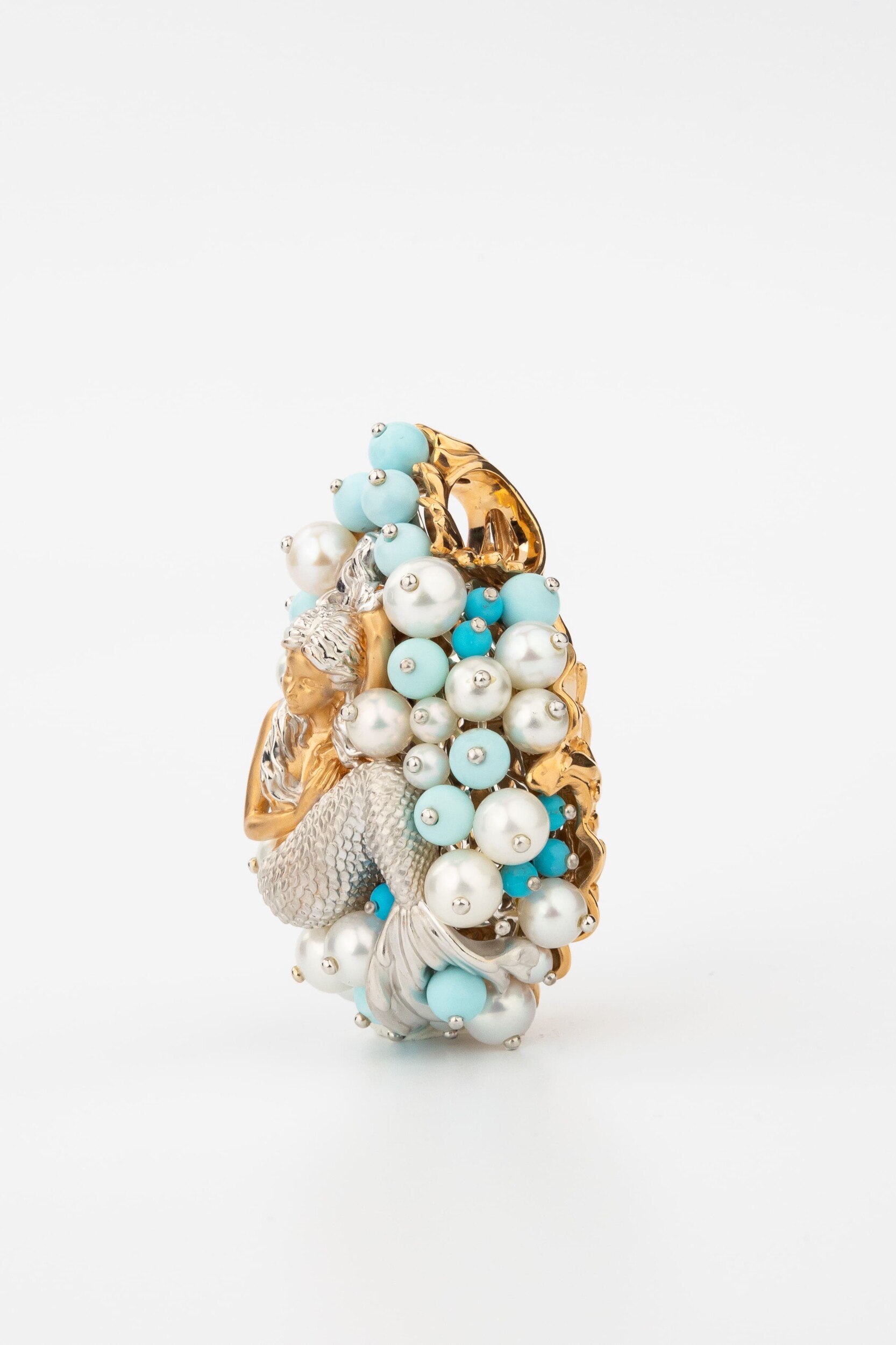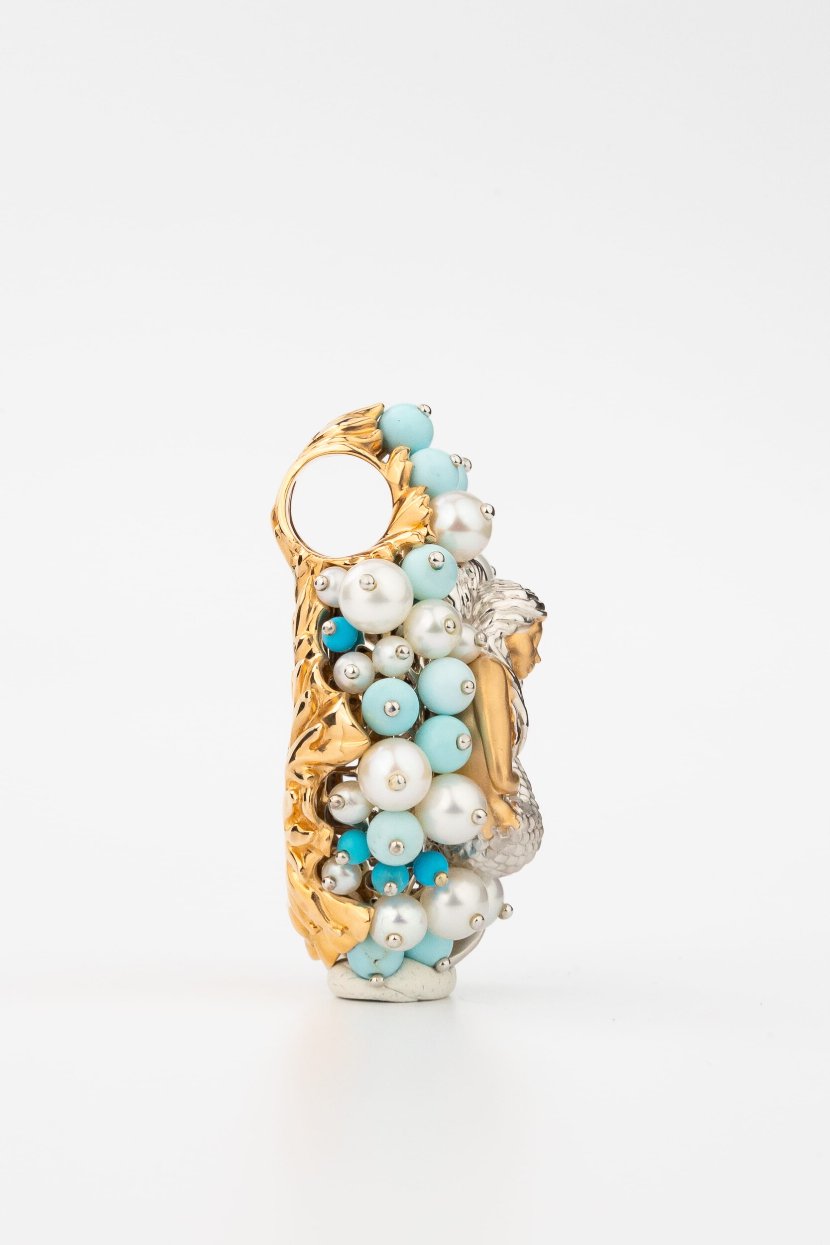 Подвеска из золота c жемчугом и бирюзой