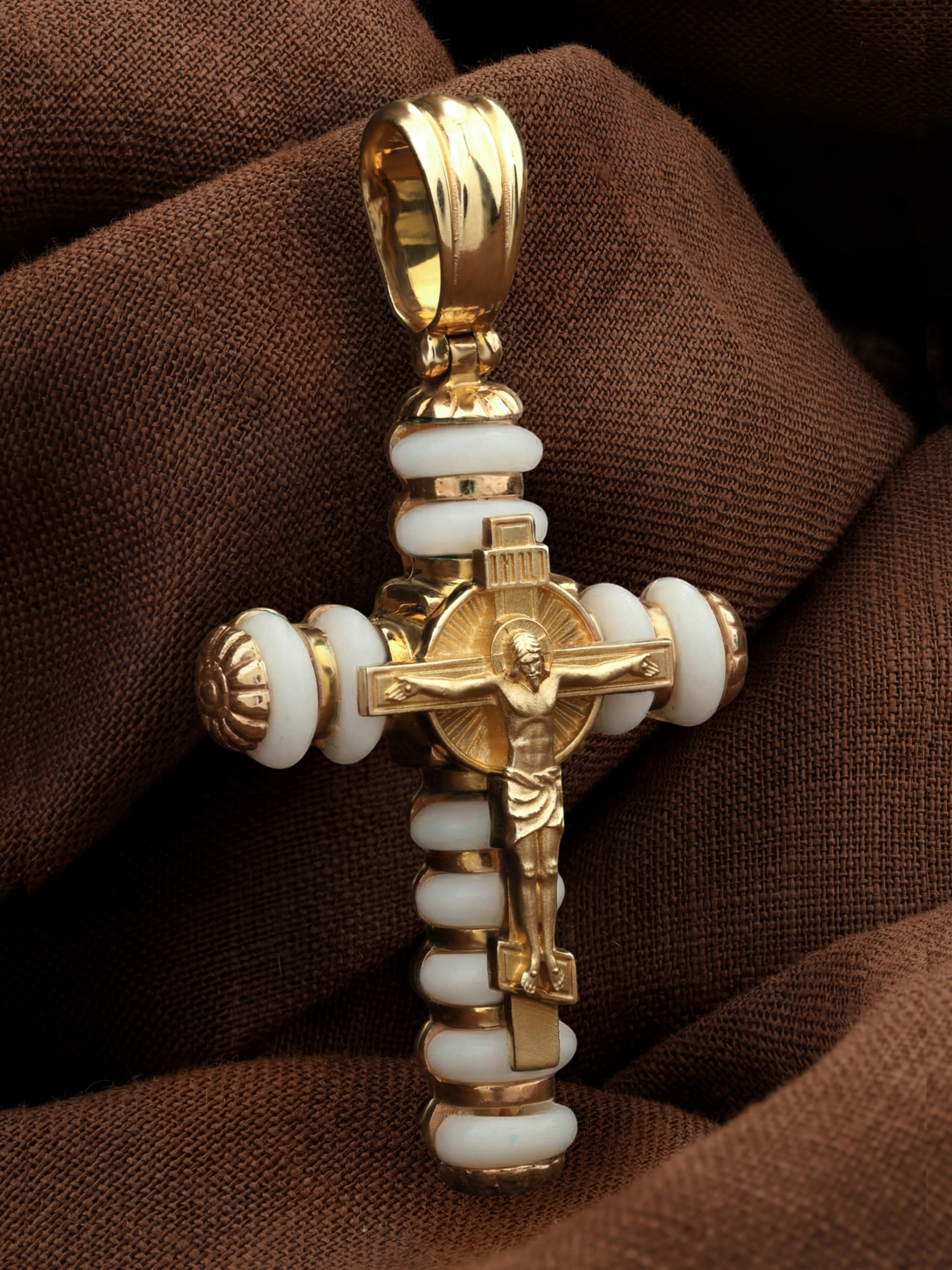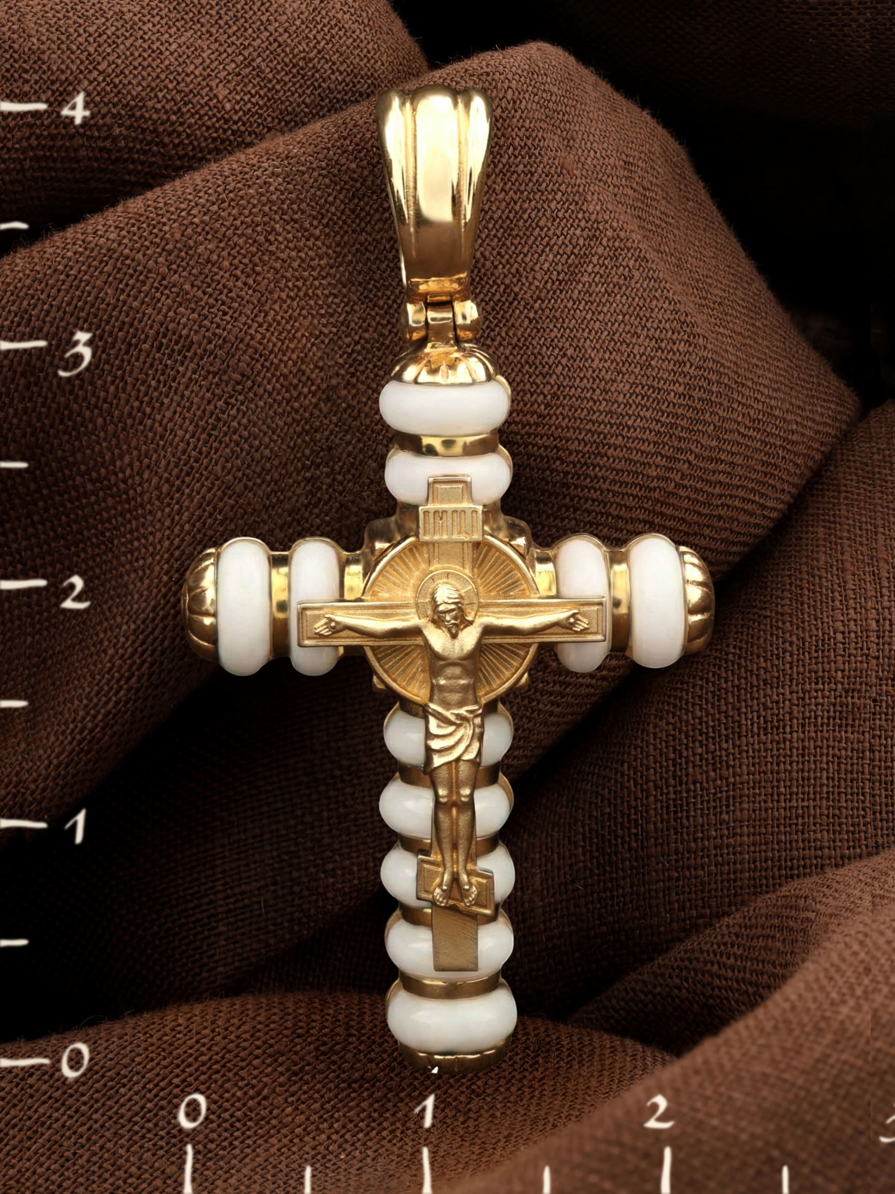 Крест из лимонного золота c кахолонгом