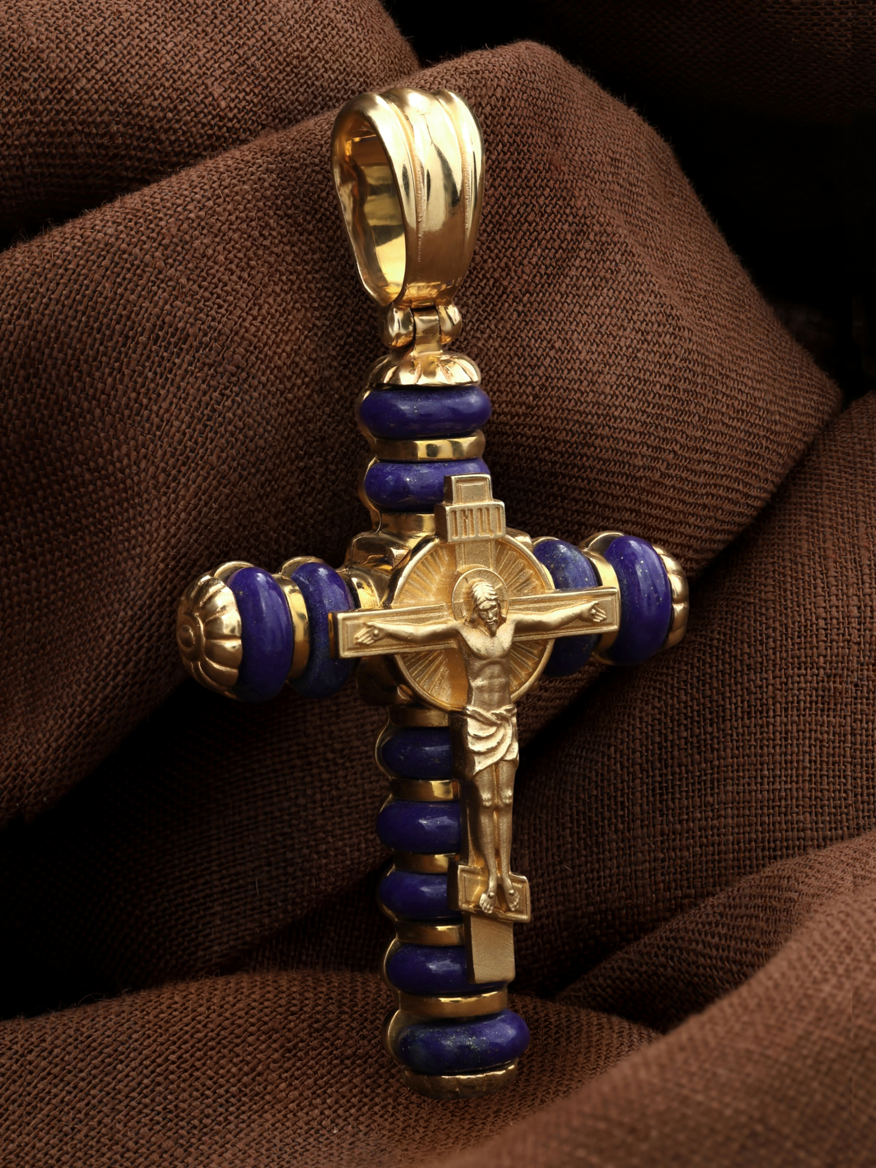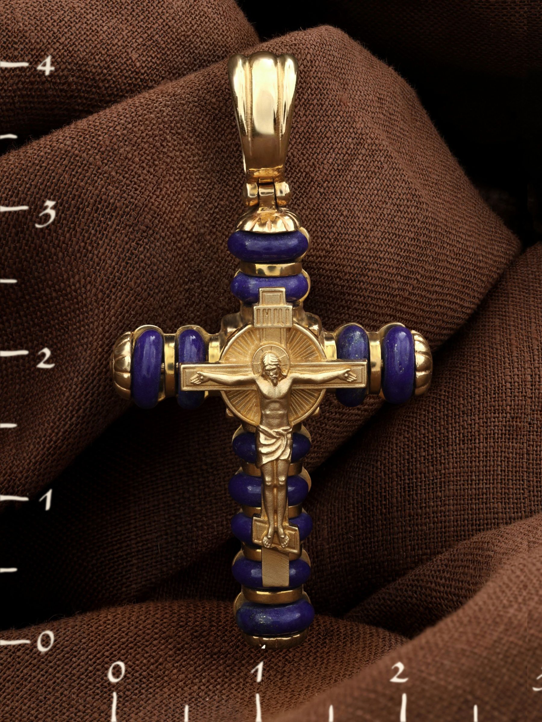 На лицевой стороне креста изображено Распятие Господа и Спасителя нашего Иисуса Христа, отдавшего Себя на смерть для искупления грехов мира. Крест является символом жертвенной любви Всеблагого Бога к падшим людям, всепобеждающим духовным оружием христиан, основанием и средоточием церковной жизни. Над вершиной Распятия помещена надпись «Царь Славы». На верхней перекладине расположена надпись «IНЦI». Она символизирует титло — табличку, на которой, согласно Евангелию, было начертано: Иисус Назорей, Царь Иудейский. Надпись «IC» «ХC»», означает Иисус Христос, помещаются на разных сторонах поперечной перекладины креста. Ниже помещена надпись «НИКА», что означает «победитель».