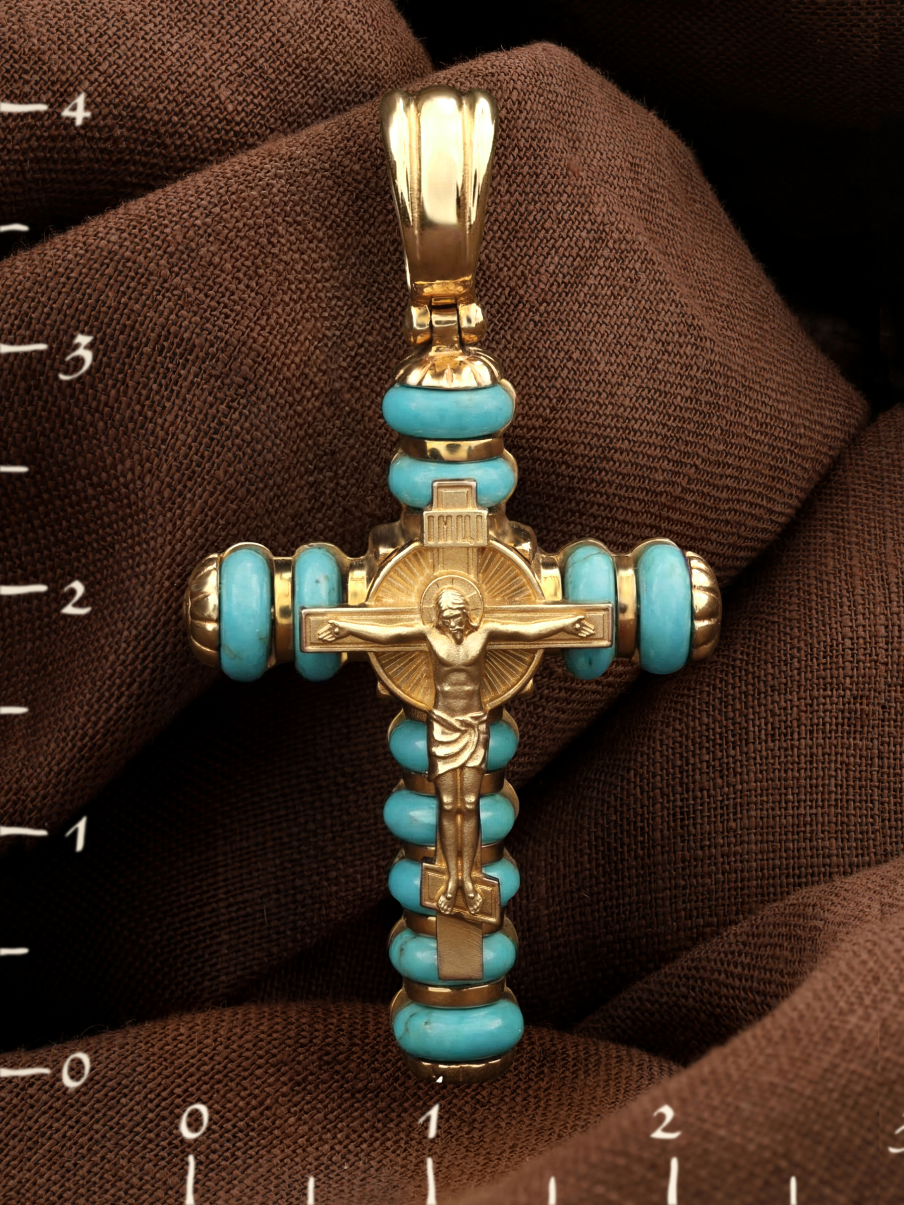 На лицевой стороне креста изображено Распятие Господа и Спасителя нашего Иисуса Христа, отдавшего Себя на смерть для искупления грехов мира. Крест является символом жертвенной любви Всеблагого Бога к падшим людям, всепобеждающим духовным оружием христиан, основанием и средоточием церковной жизни. Над вершиной Распятия помещена надпись «Царь Славы». На верхней перекладине расположена надпись «IНЦI». Она символизирует титло — табличку, на которой, согласно Евангелию, было начертано: Иисус Назорей, Царь Иудейский. Надпись «IC» «ХC»», означает Иисус Христос, помещаются на разных сторонах поперечной перекладины креста. Ниже помещена надпись «НИКА», что означает «победитель».