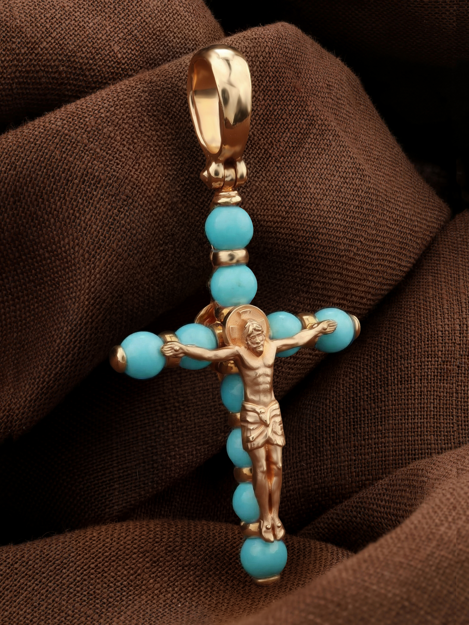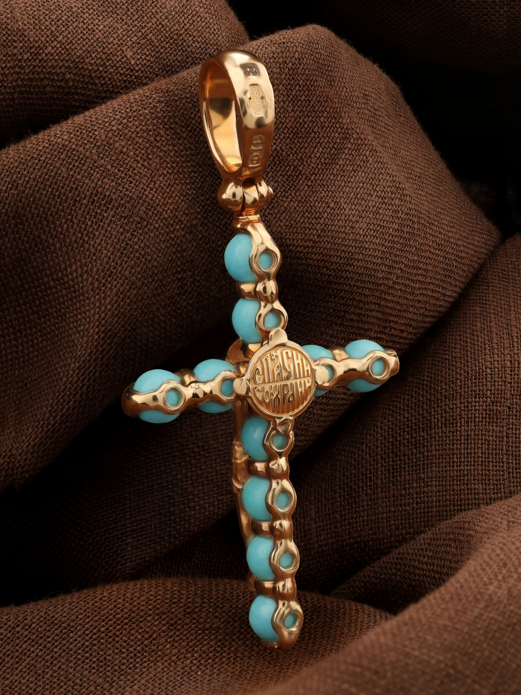 Крест из золота c бирюзой