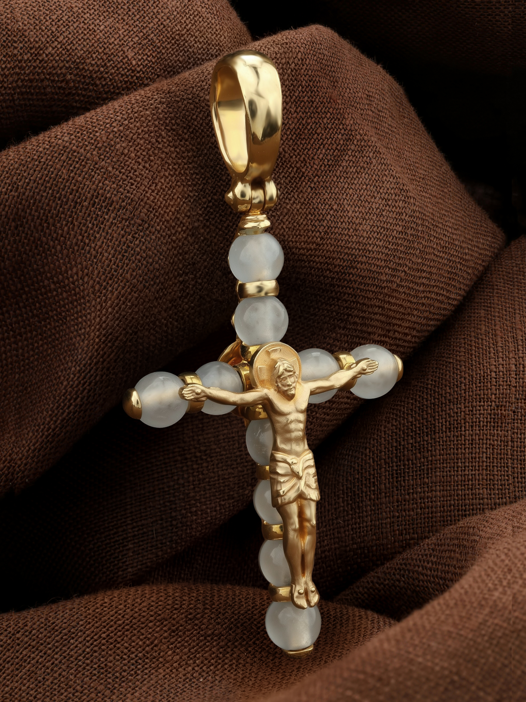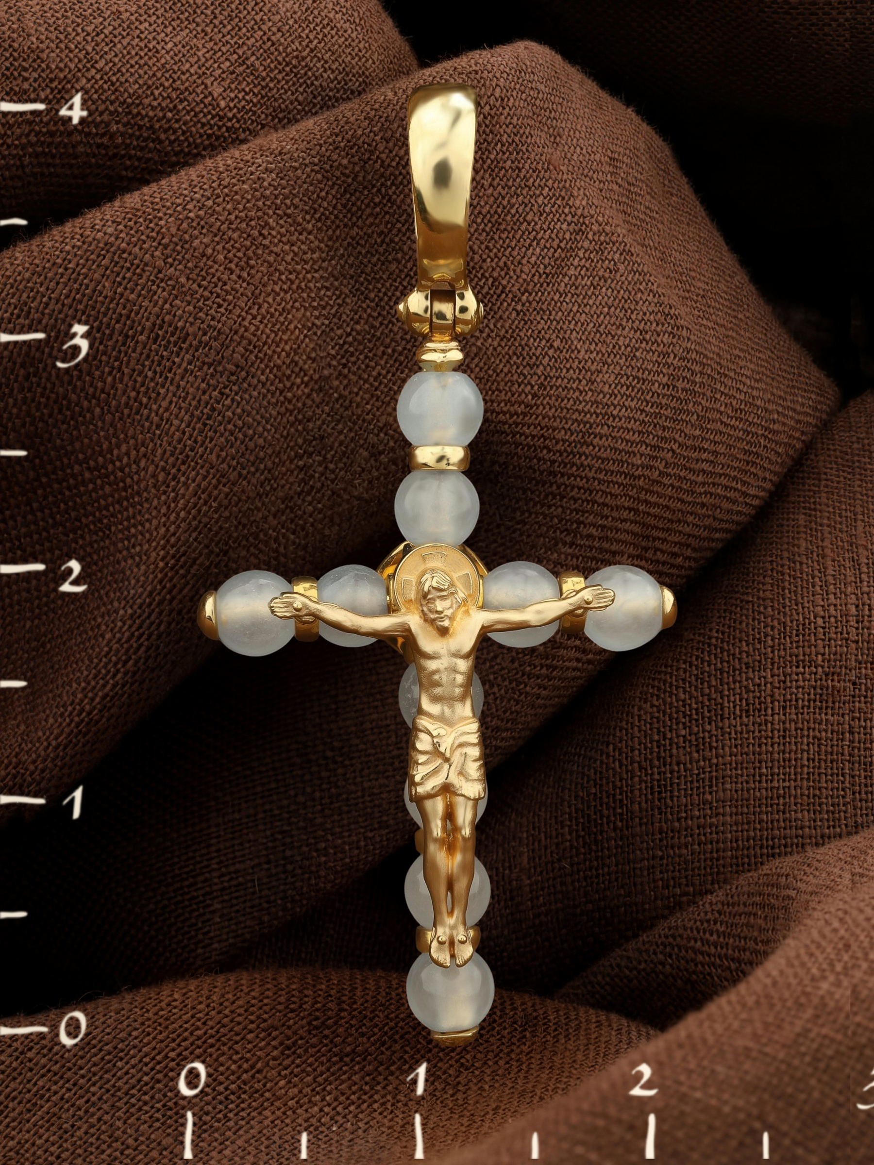На лицевой стороне креста изображено Распятие Господа и Спасителя нашего Иисуса Христа. Своими крестными страданиями Господь смыл наши грехи, покрыл наш долг перед Богом или, на языке Писания, нас «искупил». В Голгофе сокрыта непостижимая тайна бесконечной правды и любви Бога. Крест стал символом победы добра над злом, жизни над смертью, напоминанием бесконечной Божьей любви, предметом радости. Воплотившийся Сын Божий Своею кровью освятил крест и сделал его проводником Своей благодати, источником освящения верующих.