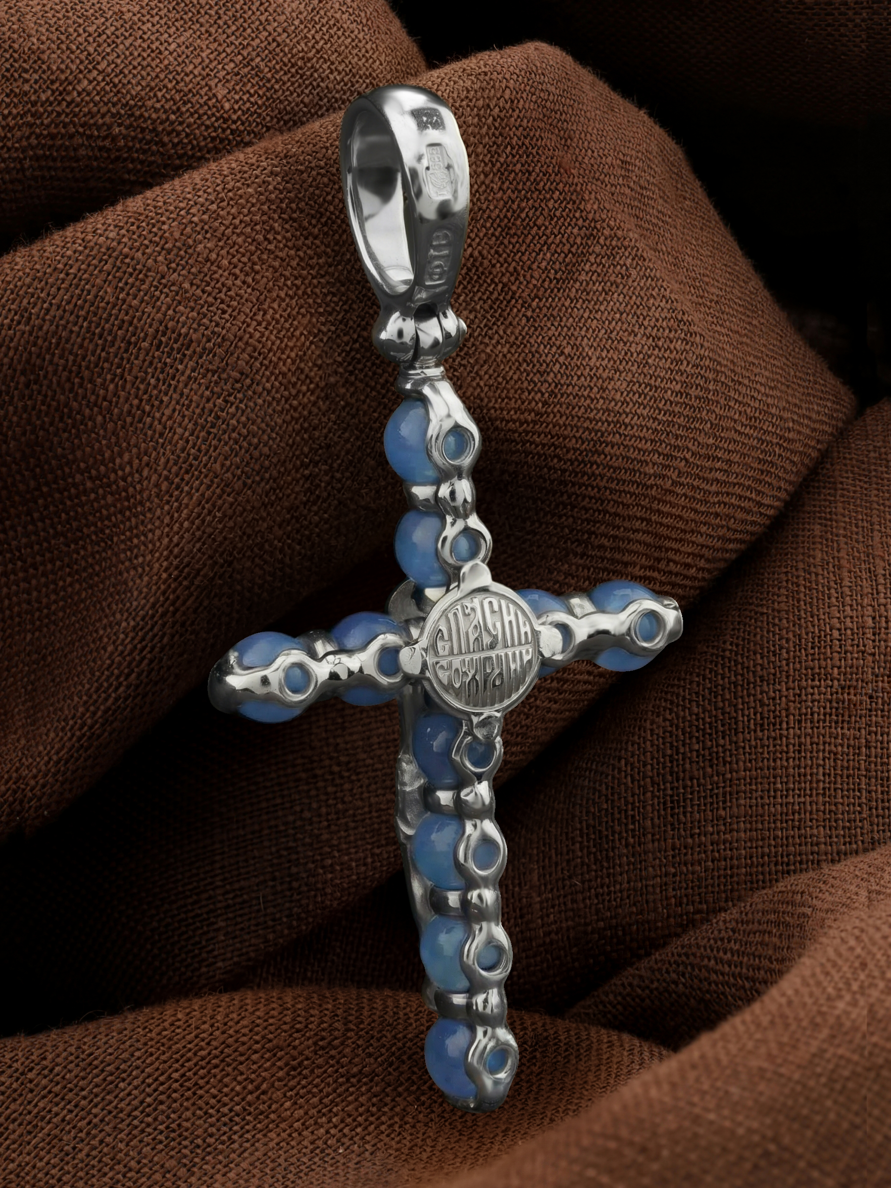 В центрально части оборотной стороны креста написана молитва: «Спаси и сохрани».