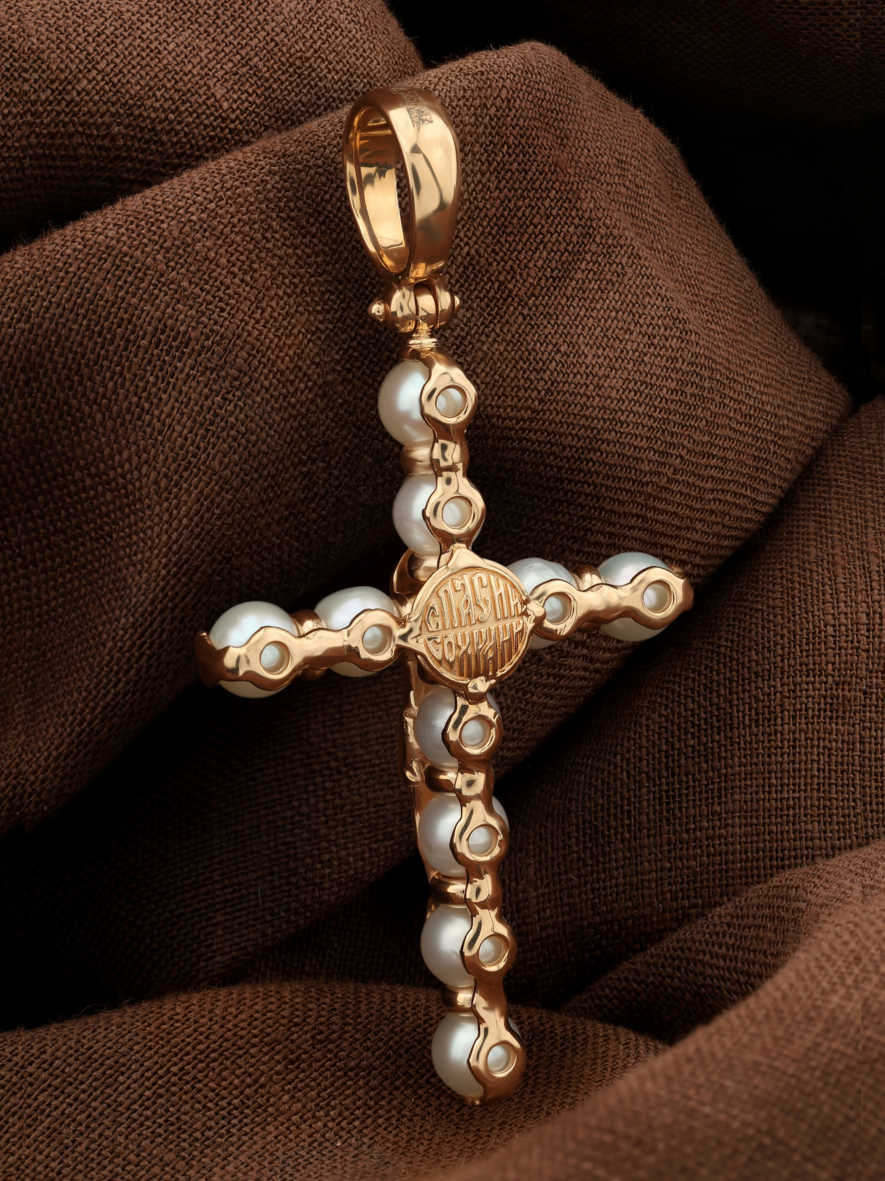 На лицевой стороне креста изображено Распятие Господа и Спасителя нашего Иисуса Христа. Своими крестными страданиями Господь смыл наши грехи, покрыл наш долг перед Богом или, на языке Писания, нас «искупил». В Голгофе сокрыта непостижимая тайна бесконечной правды и любви Бога. Крест стал символом победы добра над злом, жизни над смертью, напоминанием бесконечной Божьей любви, предметом радости. Воплотившийся Сын Божий Своею кровью освятил крест и сделал его проводником Своей благодати, источником освящения верующих. На верхней табличке, выше головы Иисуса, расположена надпись, составленная Понтием Пилатом — «IНЦI». Она означает «Иисус Назорей, Царь Иудейский». Надпись «IC» «ХC», означает Иисус Христос, помещаются на разных сторонах поперечной перекладины креста. Христос в Своей Божественной любви, над которой смерть не властна и которая, страдая, и не страдает в обычном смысле, простирает к людям со Креста Свои объятия, в которые призывается и привлекается весь мир. Поэтому Тело Его не висит, а торжественно покоится на Кресте.