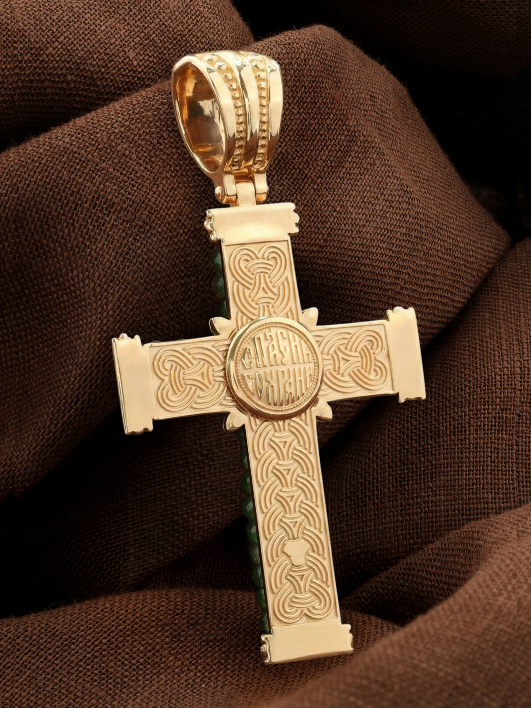 Крест из золота c хризопразом