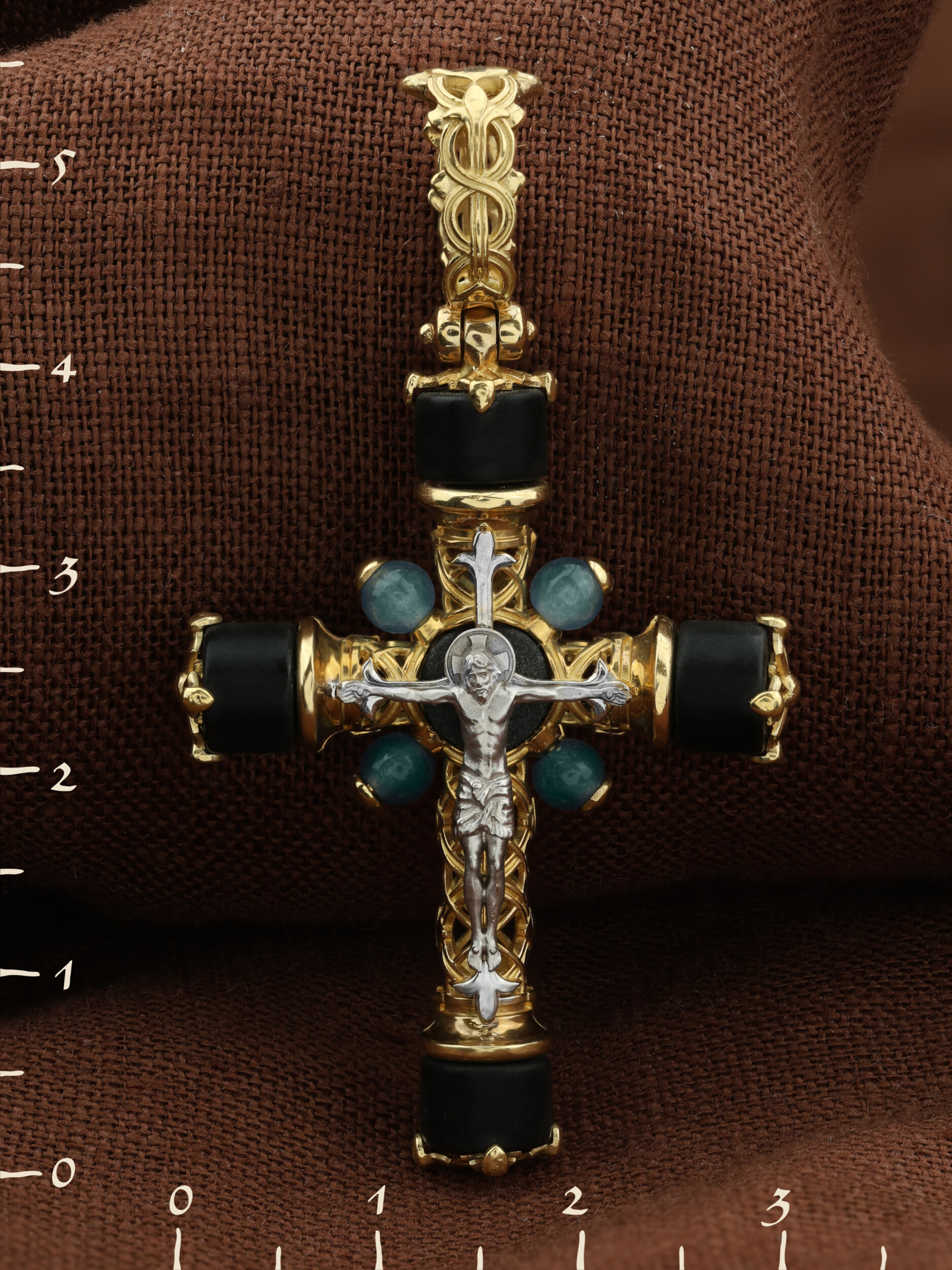 Крест из лимонного золота c ониксом и жадеитом