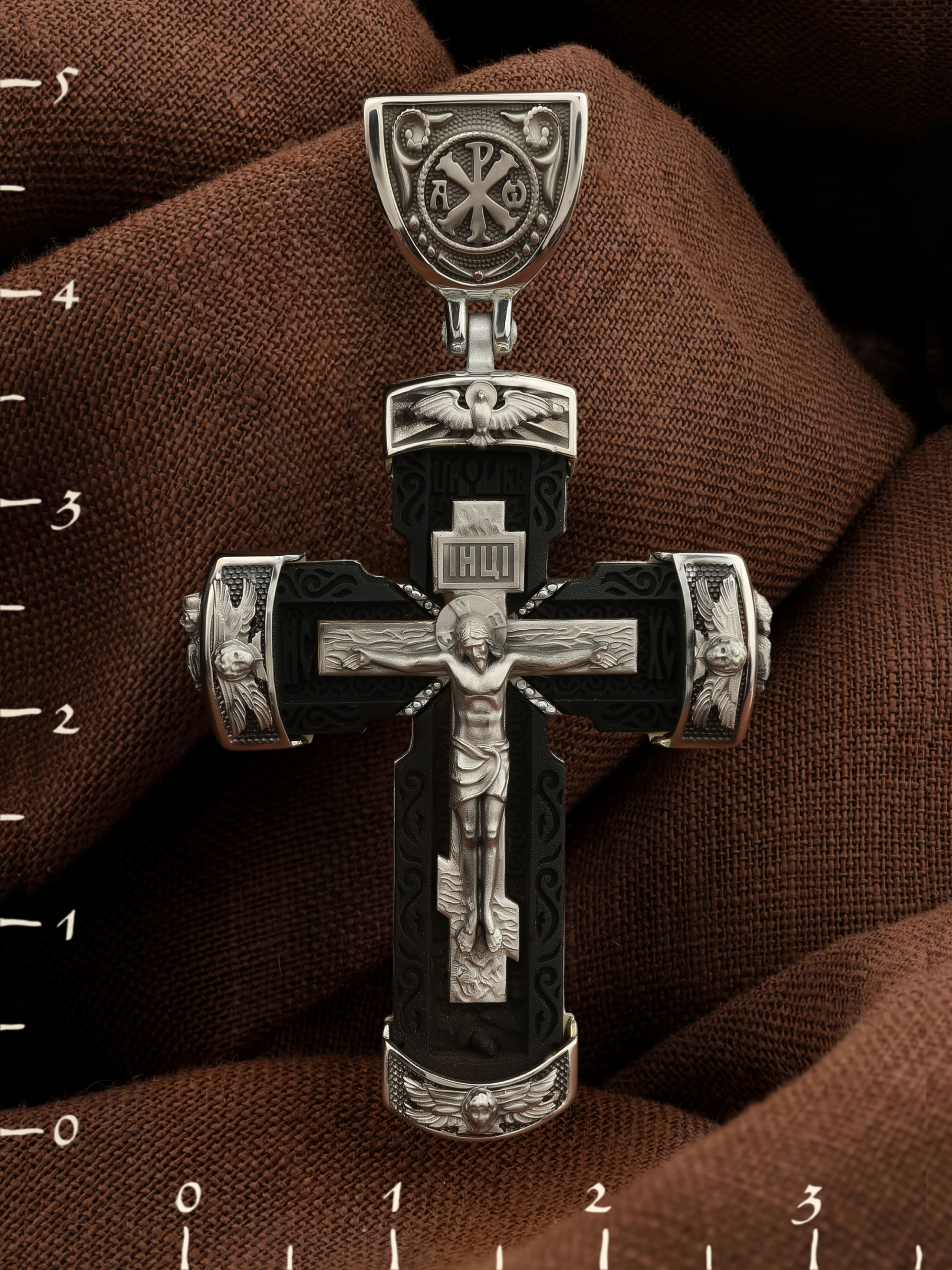 Крест из белого золота c эбеновым деревом
