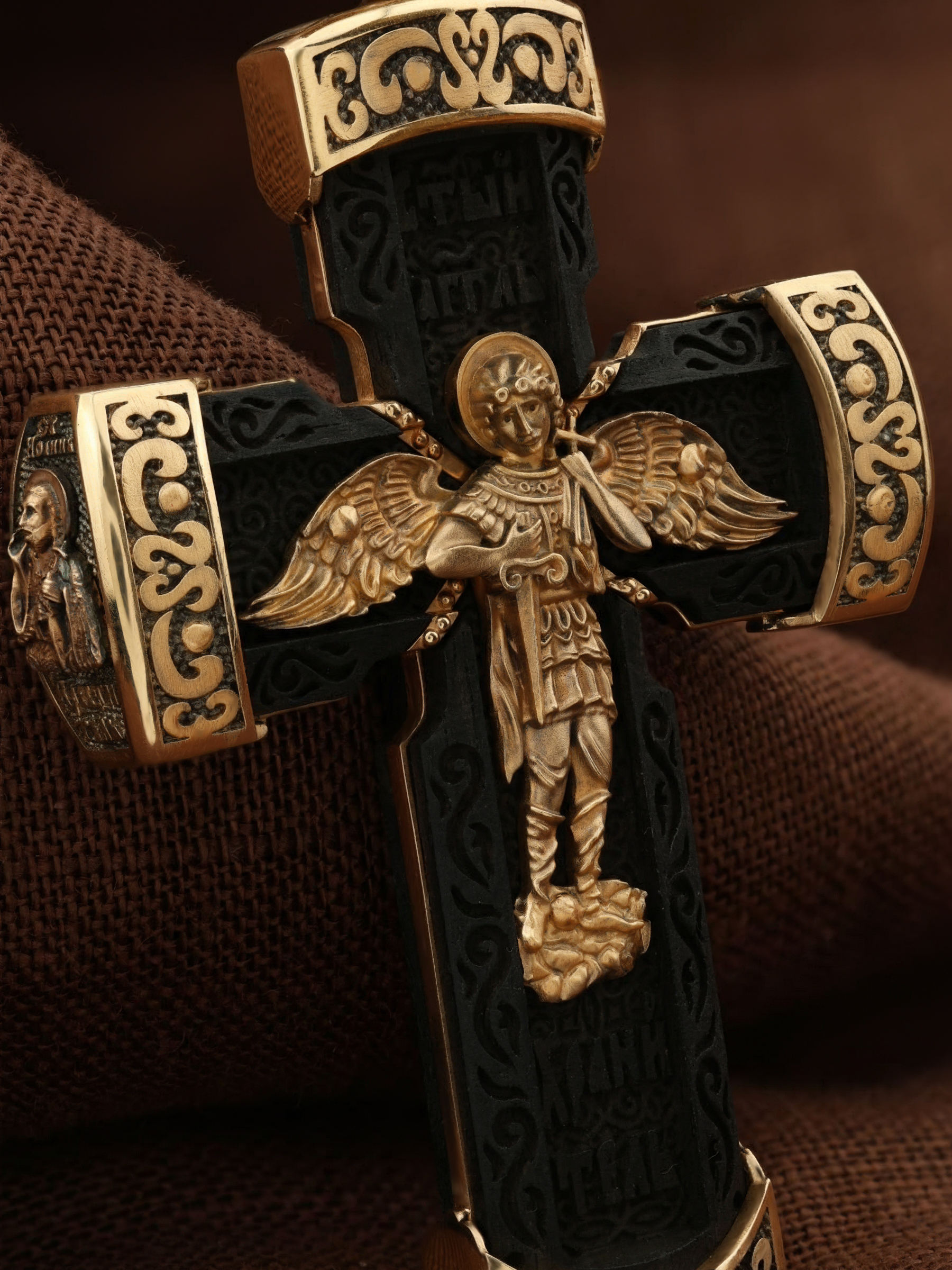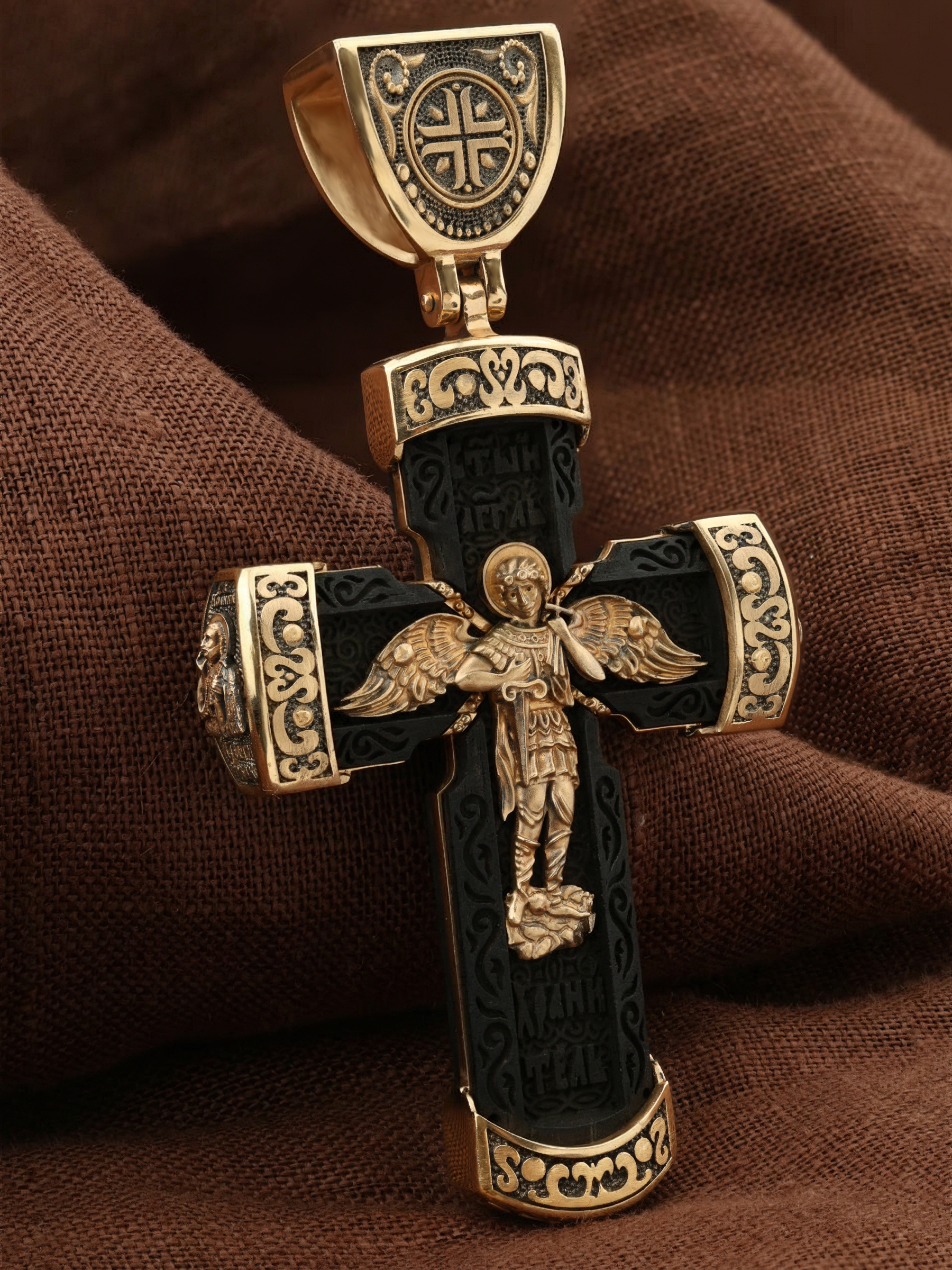 Крест из золота c эбеновым деревом