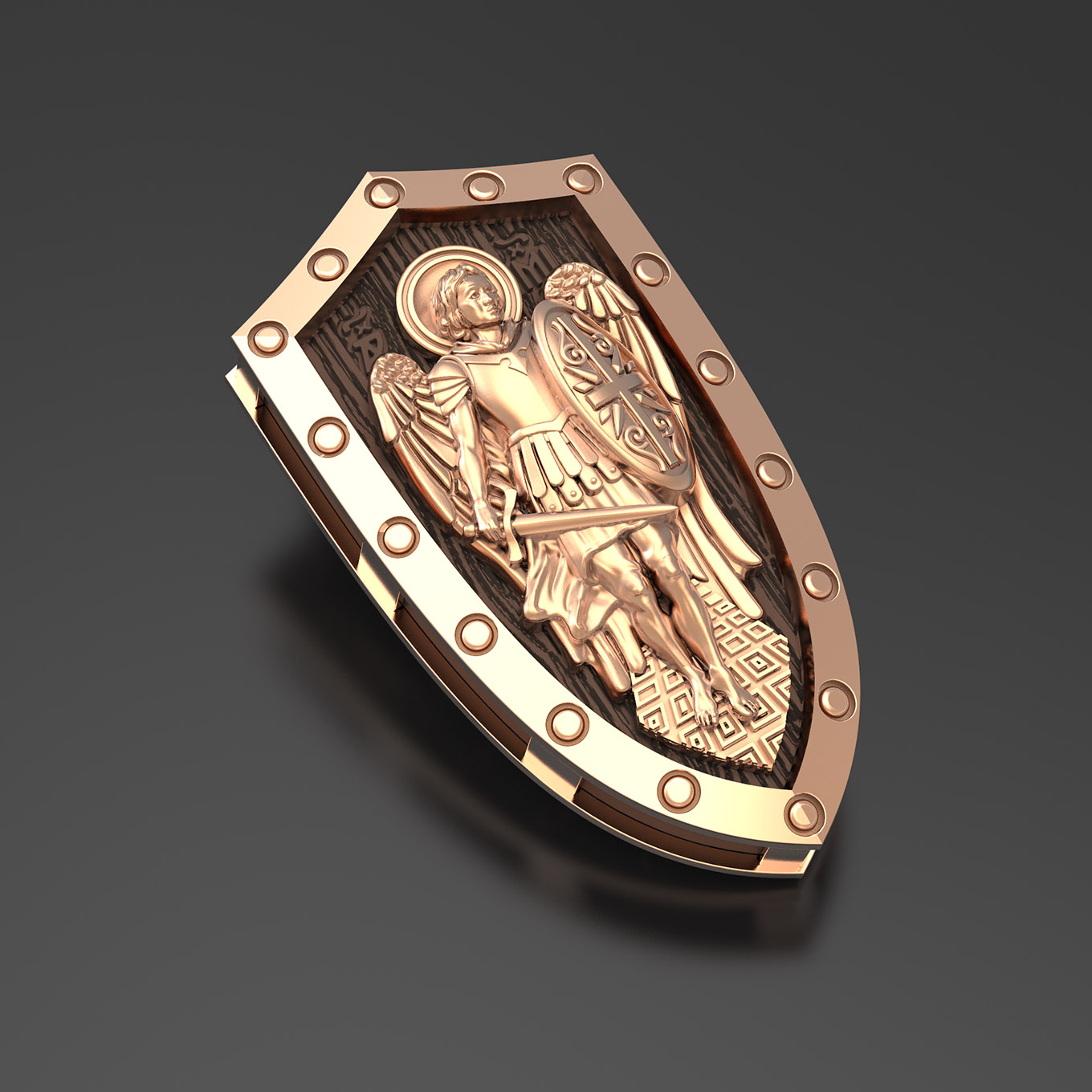 На лицевой стороне образка изображение Архангела Михаила — верного служителя Божия, который низринул с Неба возгордившегося денницу с другими павшими духами. В Православии его называют Архистратигом, что означает глава святого воинства Ангелов и Архангелов. Образок сделан в виде воинского щита. Архангел Михаил изображен в воинственном виде с огненным мечом в правой руке и щитом в левой. Архангел почитается как покровитель воинов и всех верных Богу и ведущих борьбу против сил зла, борец против ересей, а также защитник душ умерших, страж райских врат. С древних времен прославлен своими чудесами Архангел Михаил на Руси. Примеров явления и помощи Архистратига Михаила в русской истории бессчетно. Архангел Михаил не перестает ратоборствовать за славу Творца и Господа всяческих, за дело спасения рода человеческого, за церковь и чад ее. И, согласно, Откровению Иоанна Богослова во время последней битвы небесных и дьявольских сил Михаил и его ангелы опять низвергнут Люцифера вместе с его войском: «Михаил и Ангелы его воевали против дракона, и дракон и ангелы его воевали [против них], но не устояли, и не нашлось уже для них места на небе. И низвержен был великий дракон, древний змий, называемый диаволом и сатаною, обольщающий всю вселенную, низвержен на землю, и ангелы его низвержены с ним» (Откр.12:7−9).