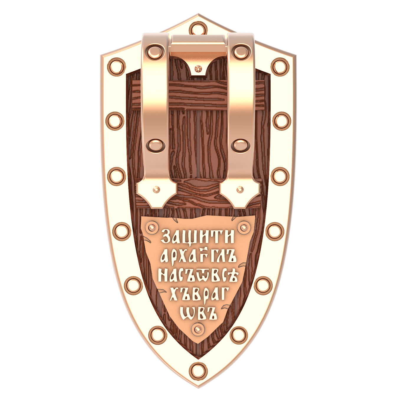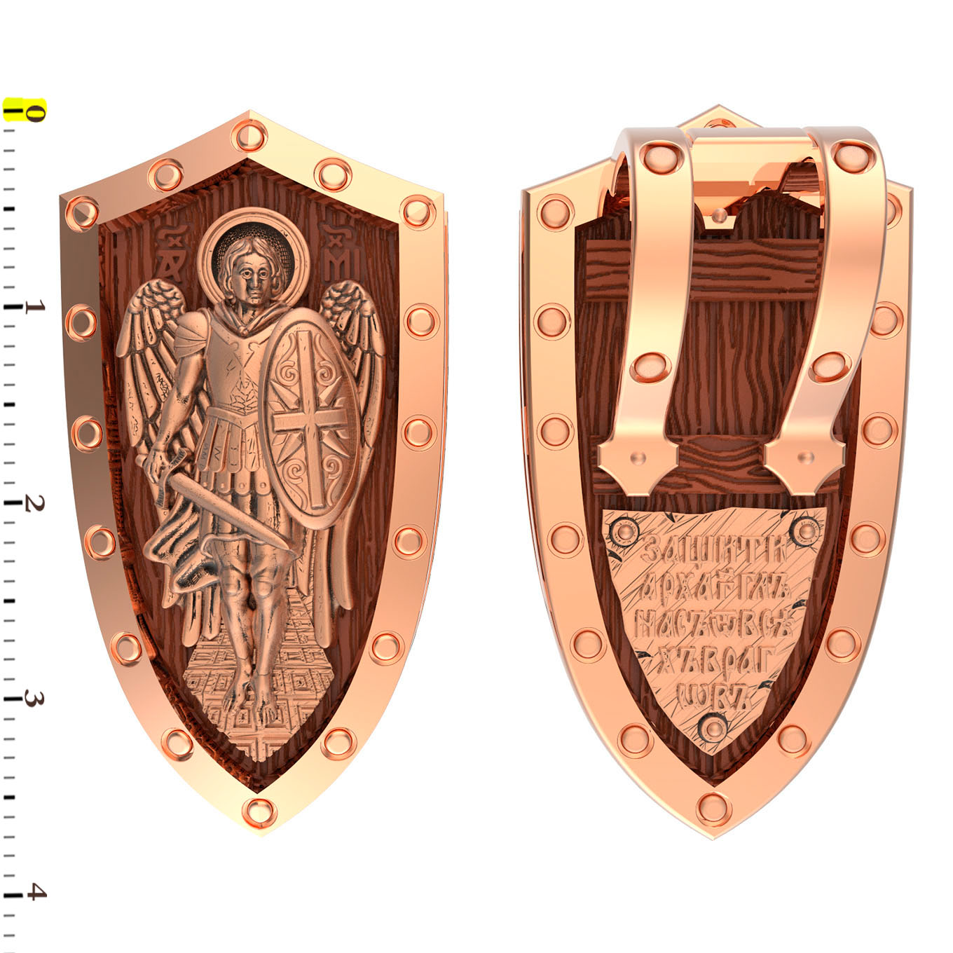 На лицевой стороне образка изображение Архангела Михаила — верного служителя Божия, который низринул с Неба возгордившегося денницу с другими павшими духами. В Православии его называют Архистратигом, что означает глава святого воинства Ангелов и Архангелов. Образок сделан в виде воинского щита. Архангел Михаил изображен в воинственном виде с огненным мечом в правой руке и щитом в левой. Архангел почитается как покровитель воинов и всех верных Богу и ведущих борьбу против сил зла, борец против ересей, а также защитник душ умерших, страж райских врат. С древних времен прославлен своими чудесами Архангел Михаил на Руси. Примеров явления и помощи Архистратига Михаила в русской истории бессчетно. Архангел Михаил не перестает ратоборствовать за славу Творца и Господа всяческих, за дело спасения рода человеческого, за церковь и чад ее. И, согласно, Откровению Иоанна Богослова во время последней битвы небесных и дьявольских сил Михаил и его ангелы опять низвергнут Люцифера вместе с его войском: «Михаил и Ангелы его воевали против дракона, и дракон и ангелы его воевали [против них], но не устояли, и не нашлось уже для них места на небе. И низвержен был великий дракон, древний змий, называемый диаволом и сатаною, обольщающий всю вселенную, низвержен на землю, и ангелы его низвержены с ним» (Откр.12:7−9).