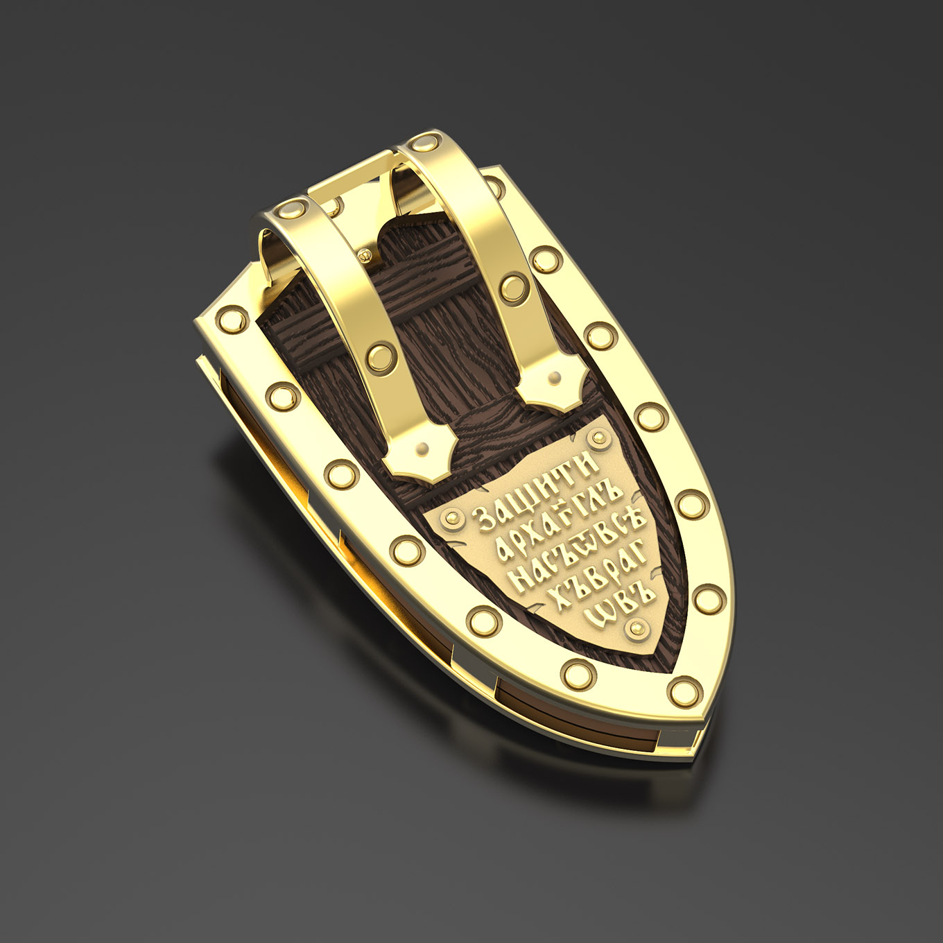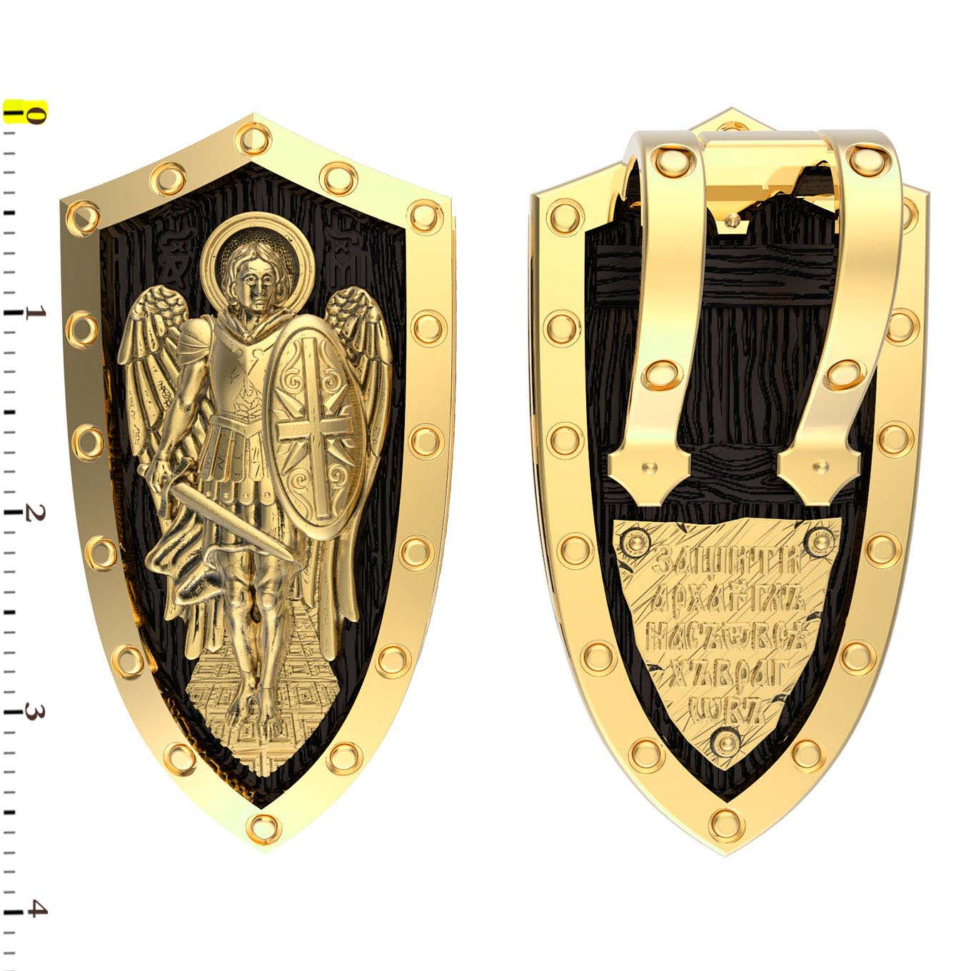 На оборотной стороне образка написаны слова молитвы: «Защити Архангел нас от всех врагов».