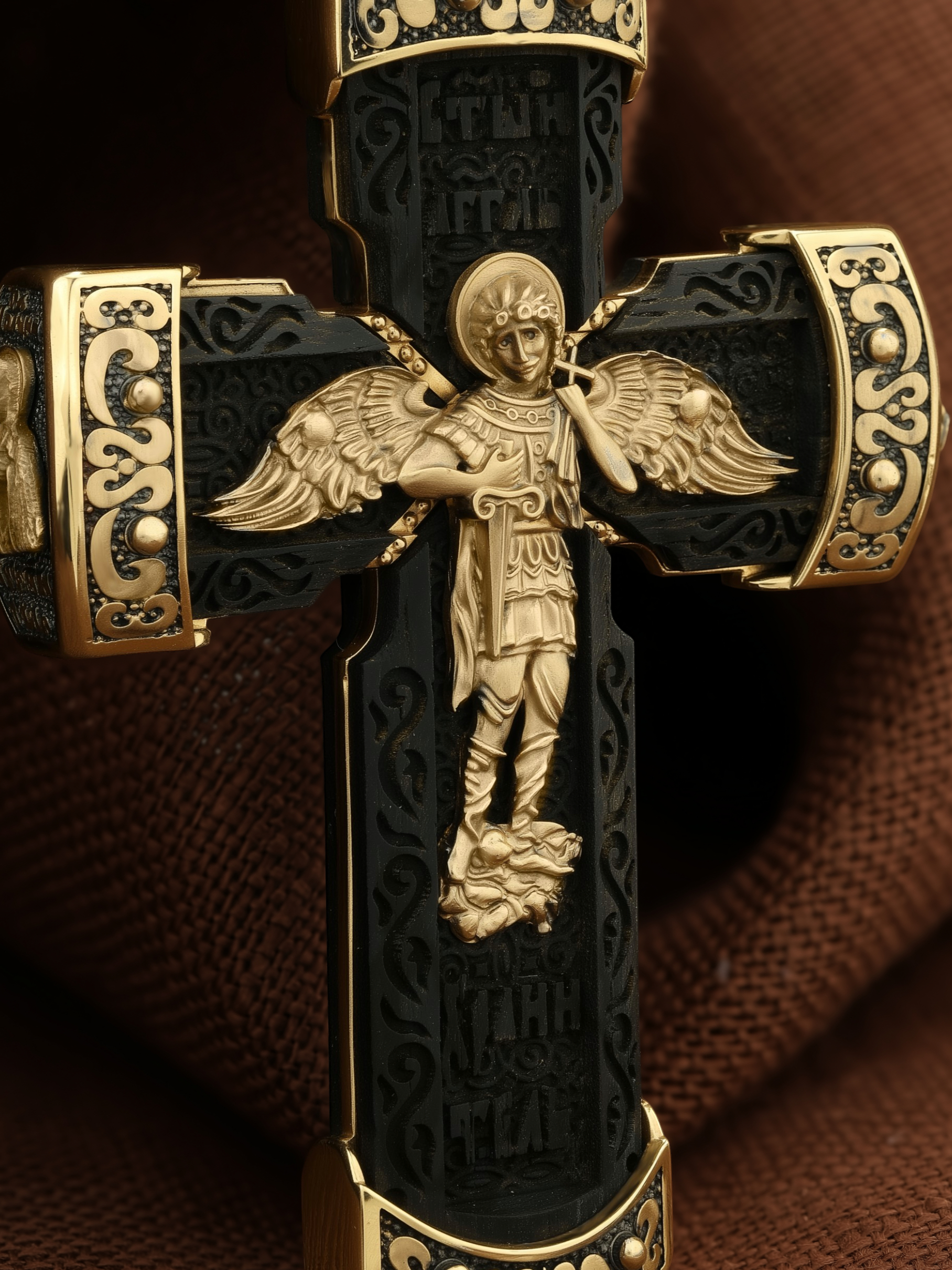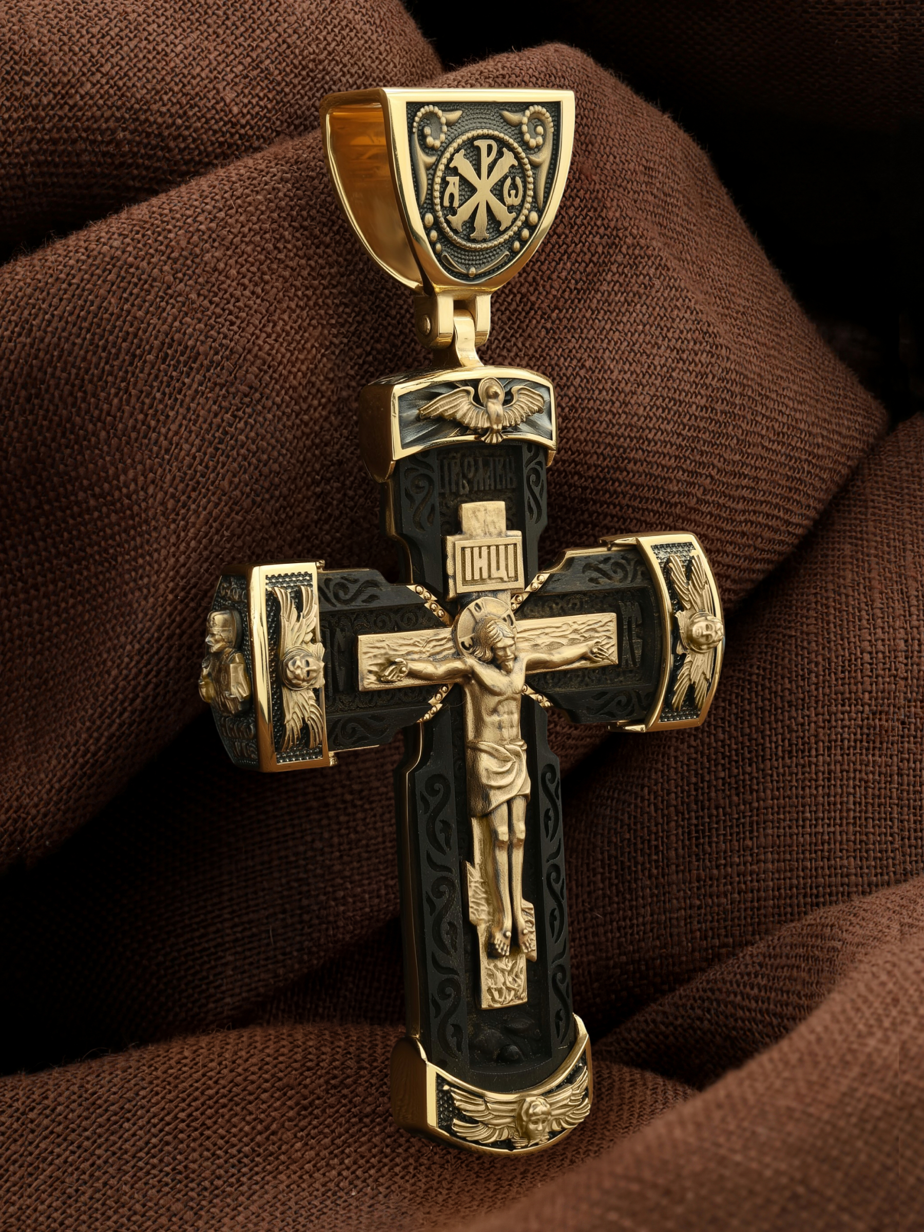 Крест из лимонного золота c эбеновым деревом