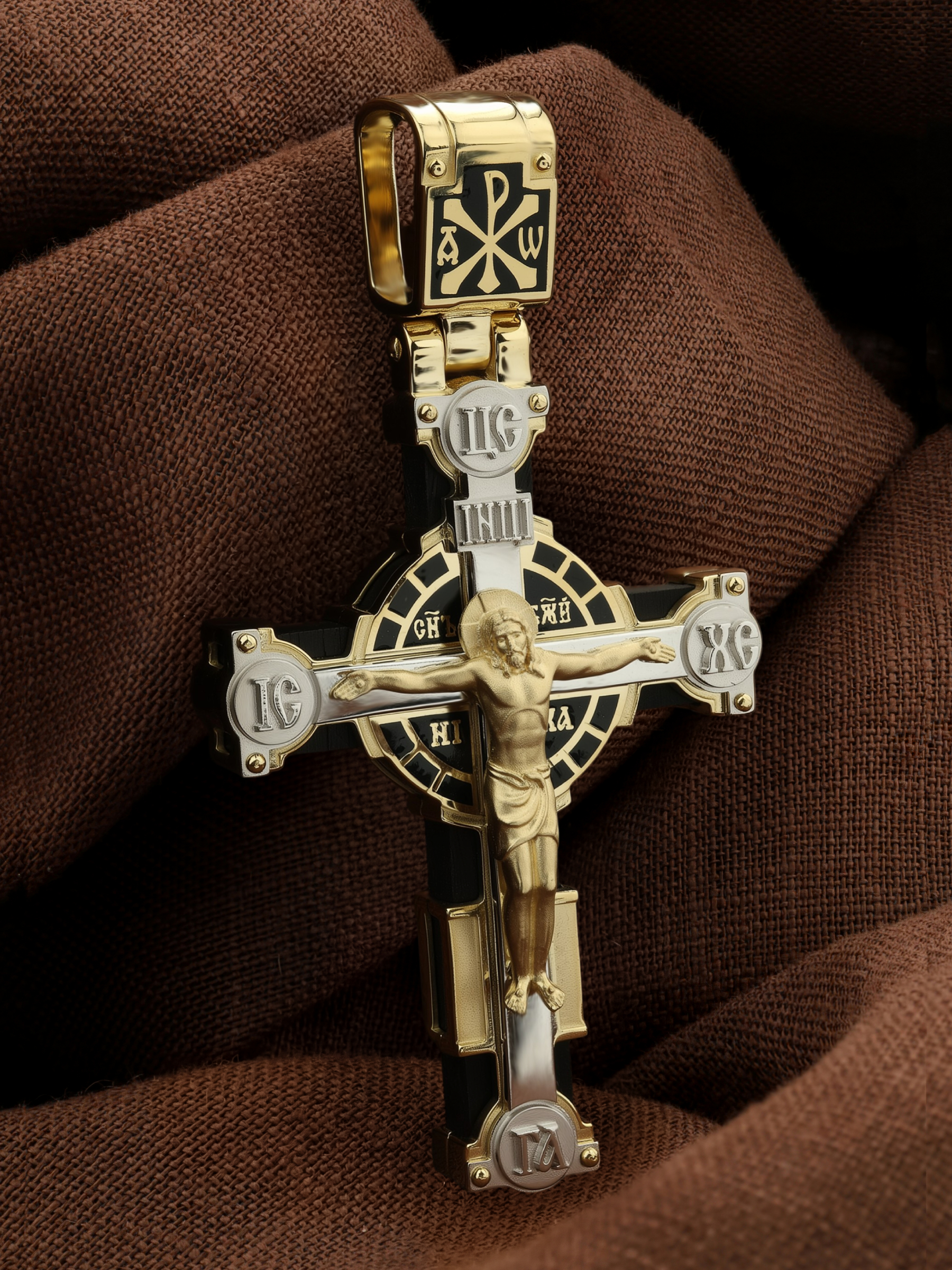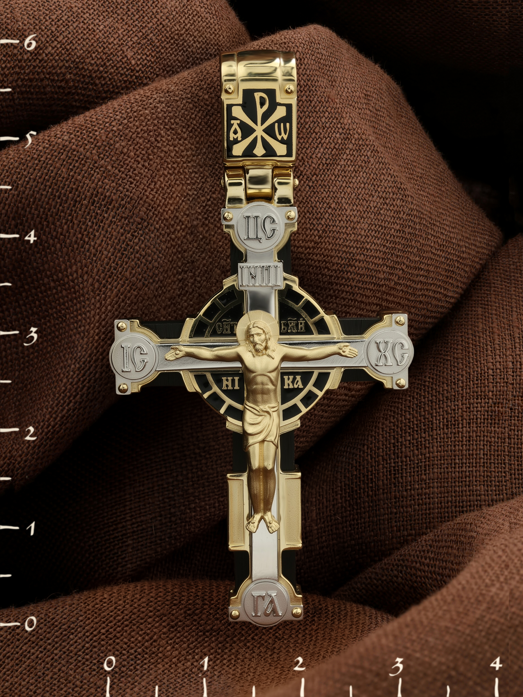 Крест из лимонного золота c эмалью и эбеновым деревом