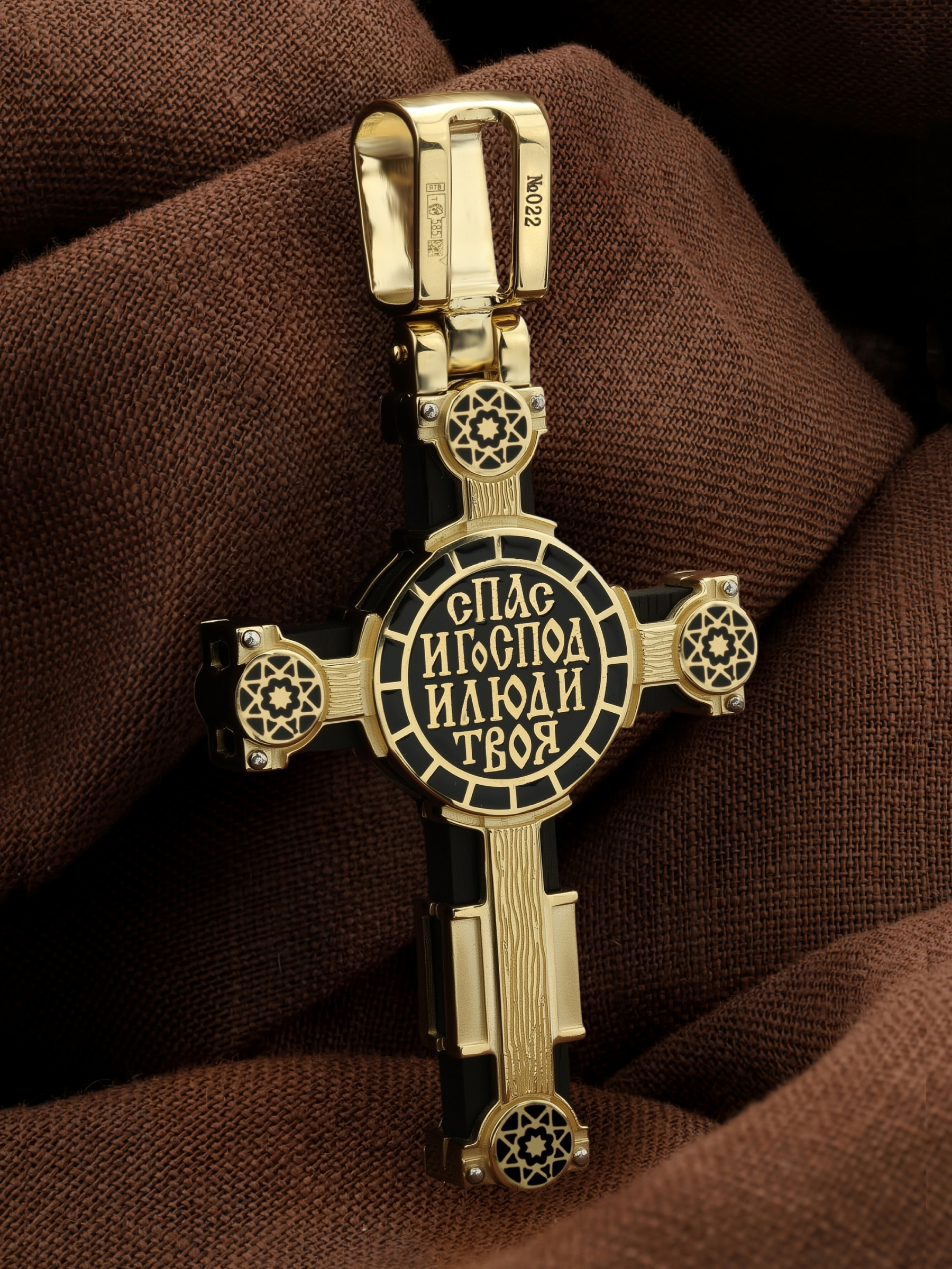 Крест из лимонного золота c эмалью и эбеновым деревом