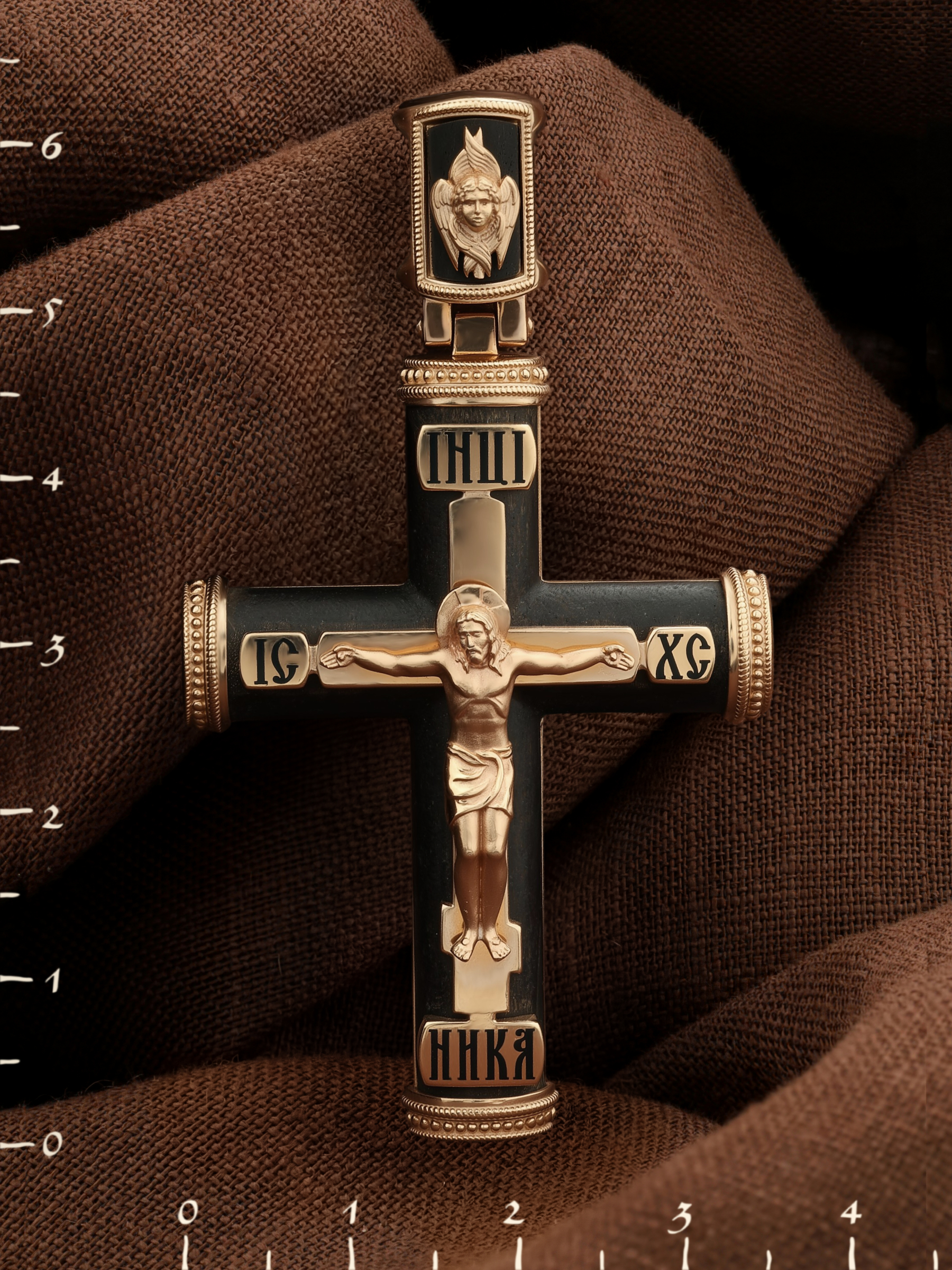Крест из золота c эмалью и эбеновым деревом