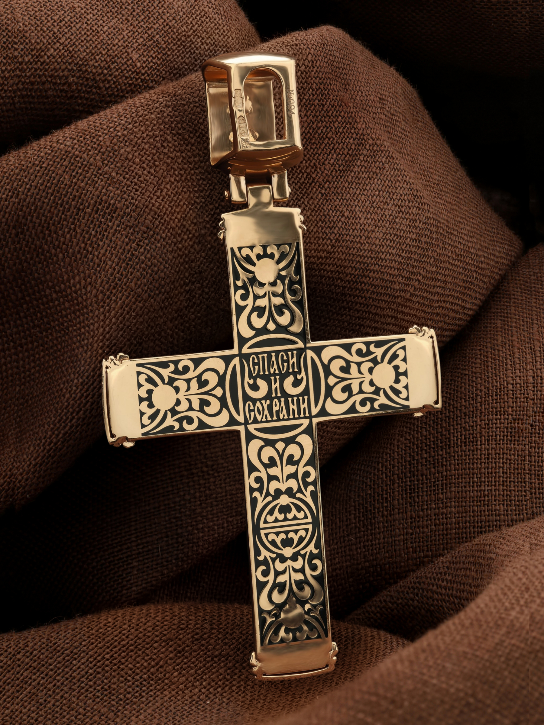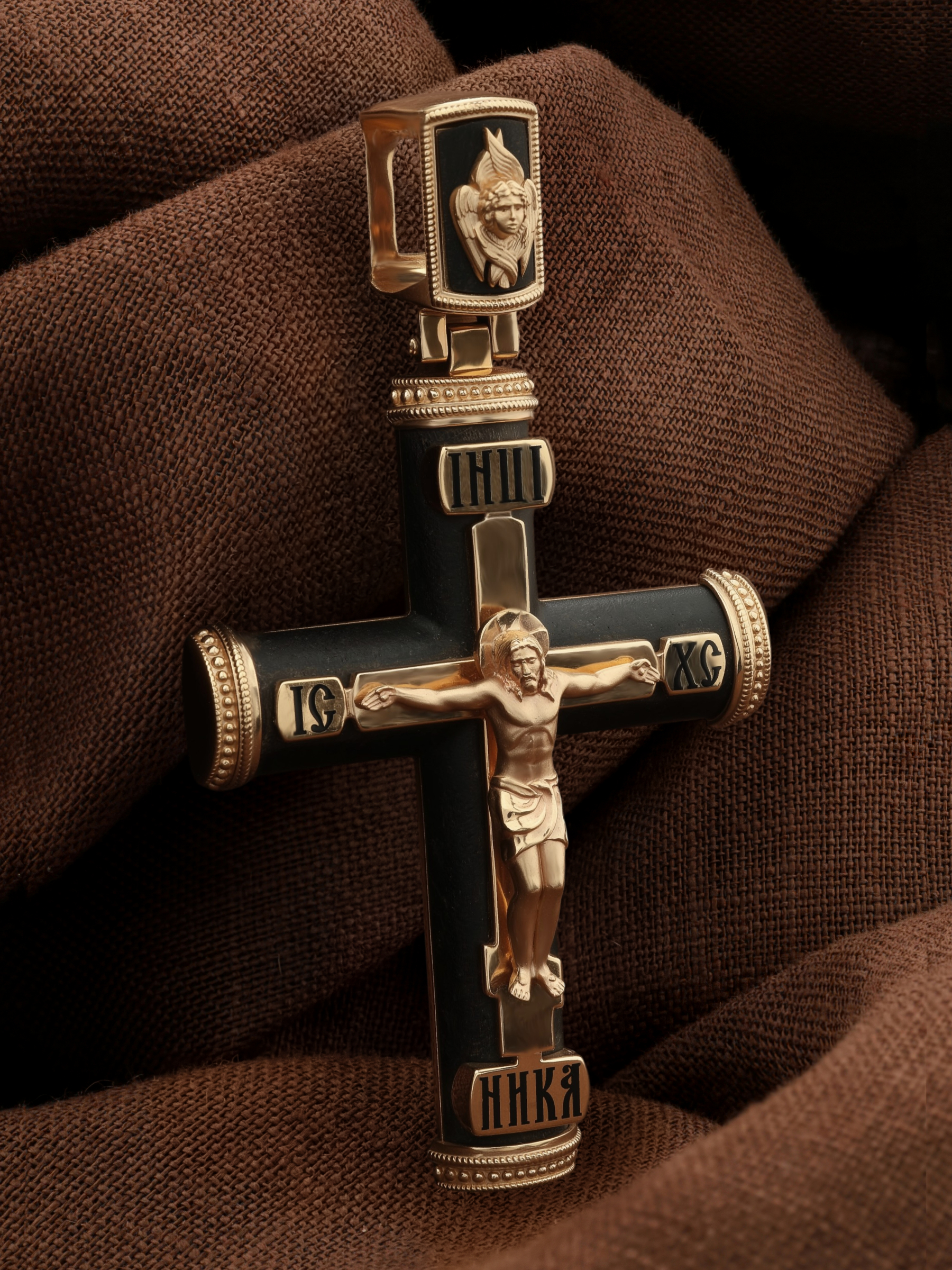 Крест из золота c эмалью и эбеновым деревом