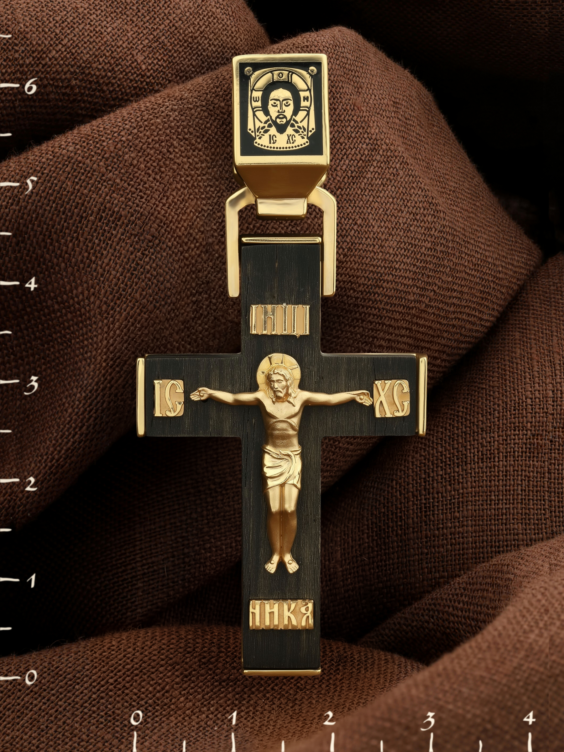 Крест из лимонного золота c эмалью и эбеновым деревом