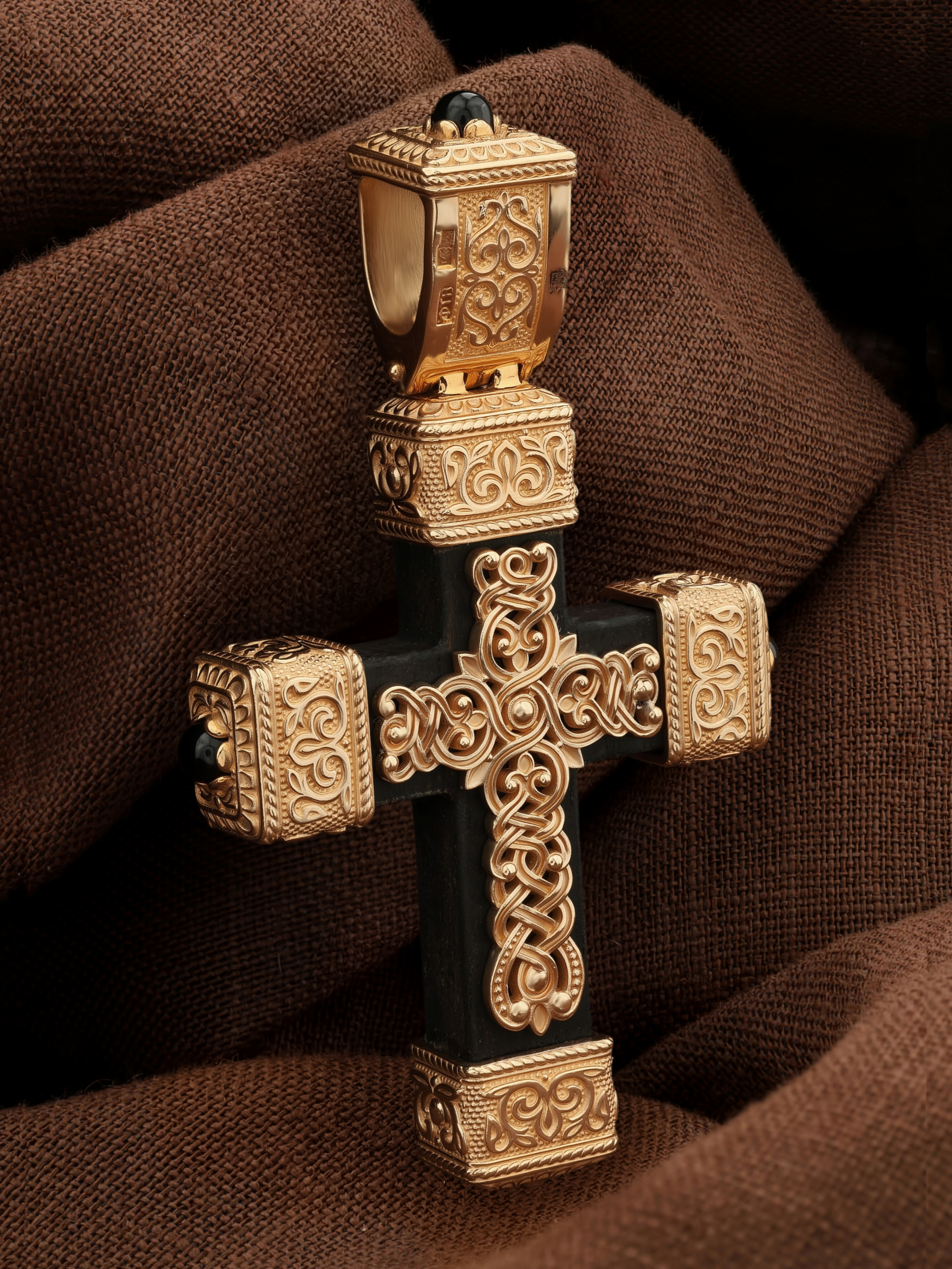 Крест из золота c эмалью, ониксом и эбеновым деревом