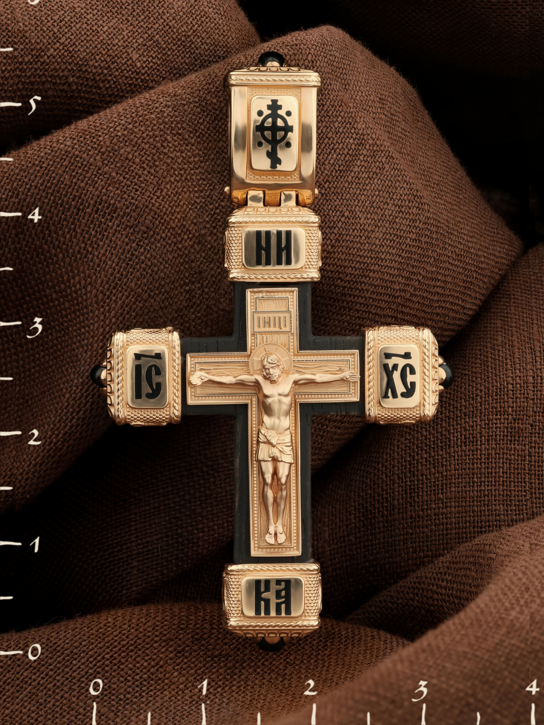 Крест из золота c эмалью, ониксом и эбеновым деревом