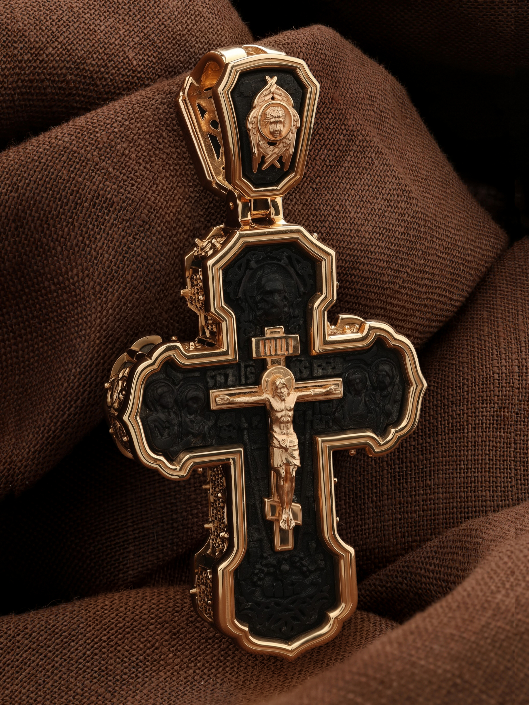 Крест из золота c эбеновым деревом