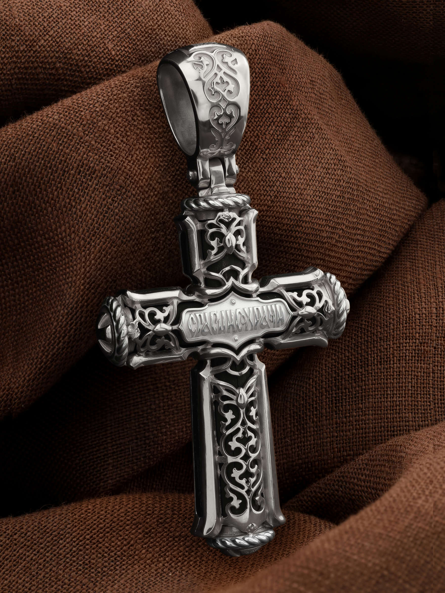 Крест из белого золота c эбеновым деревом
