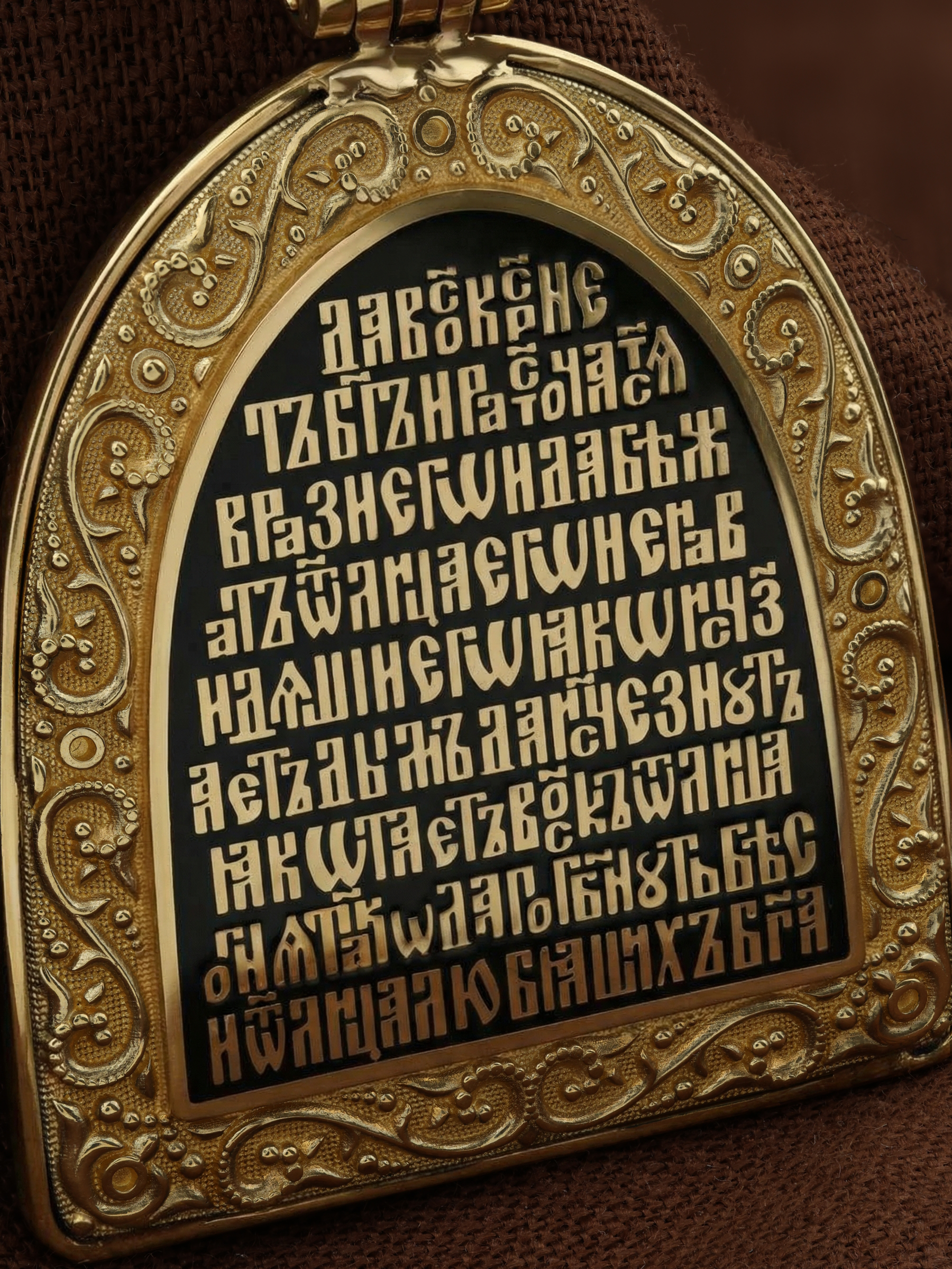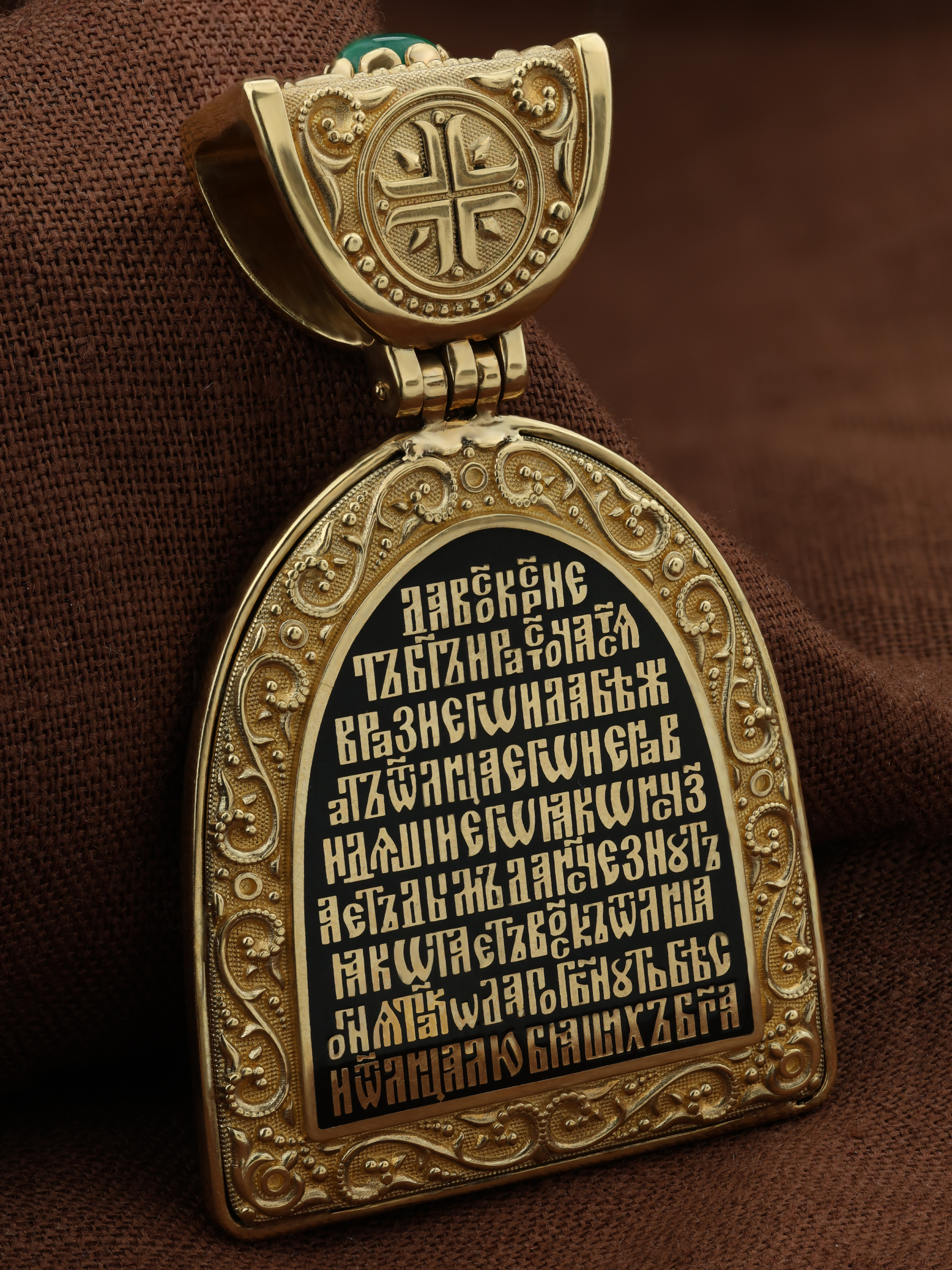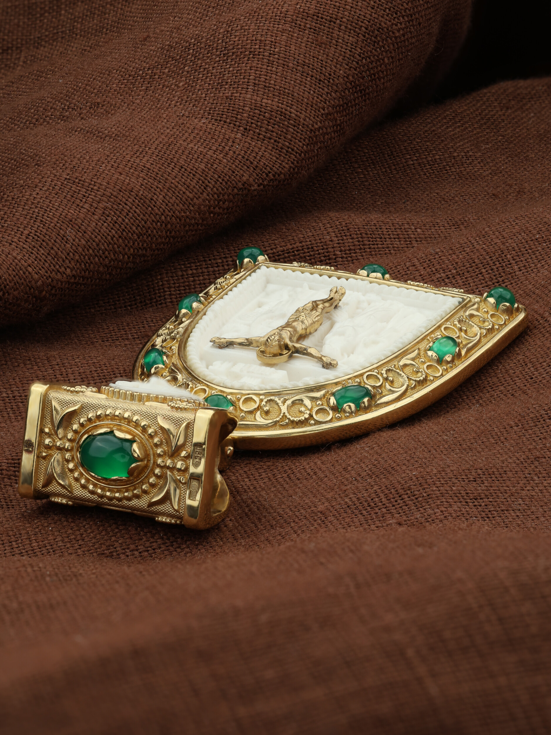 Образок из лимонного золота c эмалью, хризопразом и бивнем мамонта