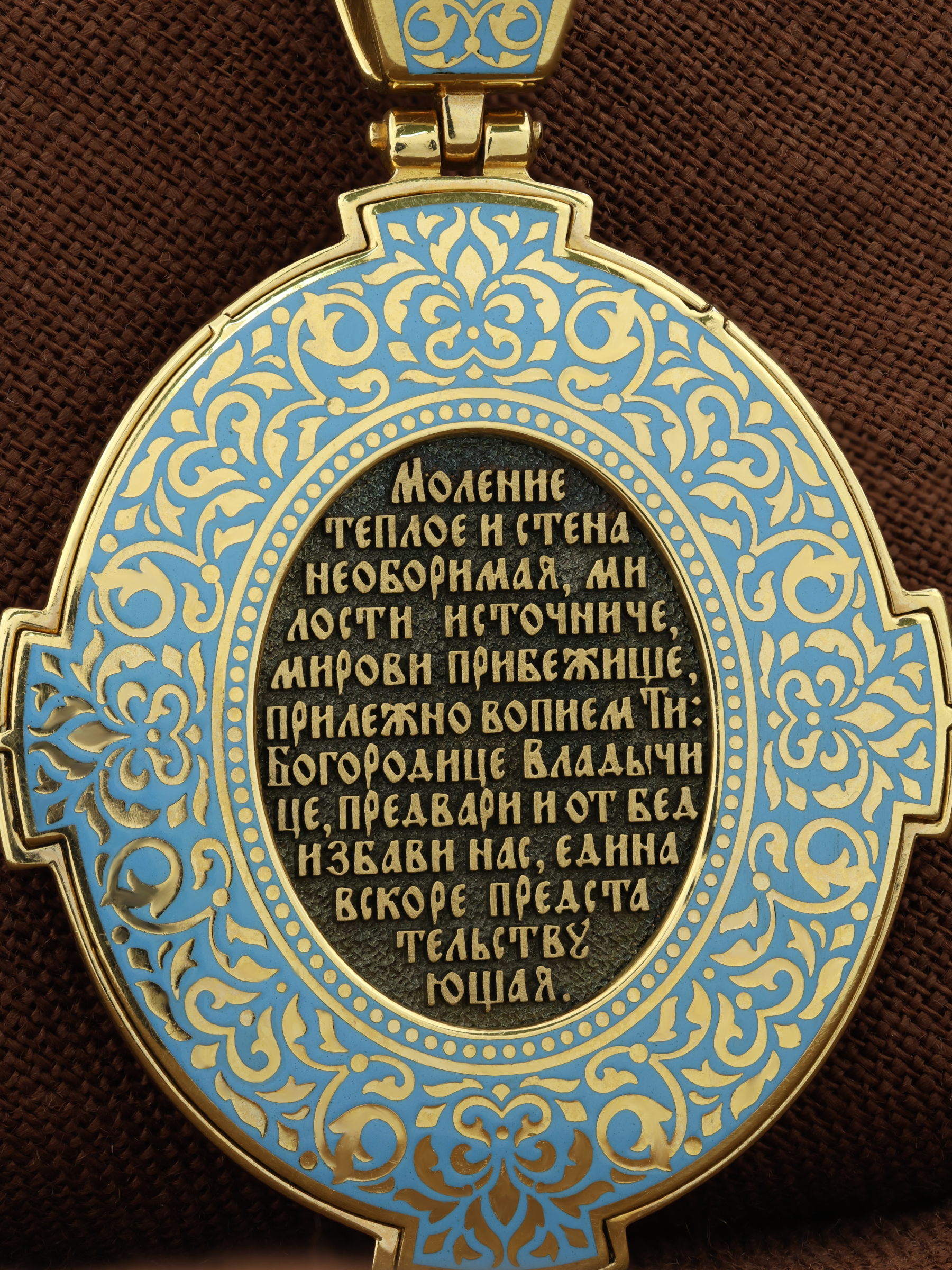 На оборотной стороне образка изображена молитва " Моление теплое и стена необоримая, милости источниче, мирови прибежище, прилежно вопием Ти: Богородице Владычице, предвари, и от бед избави нас, Едина вскоре Предстательствующая».
