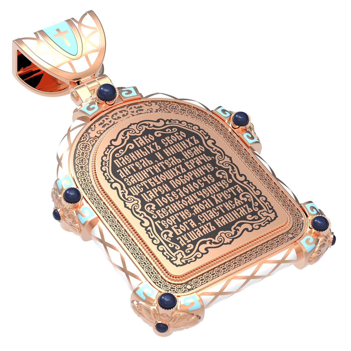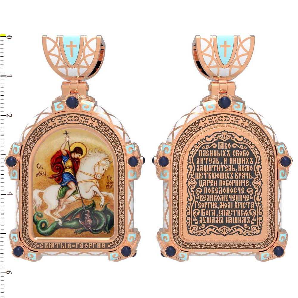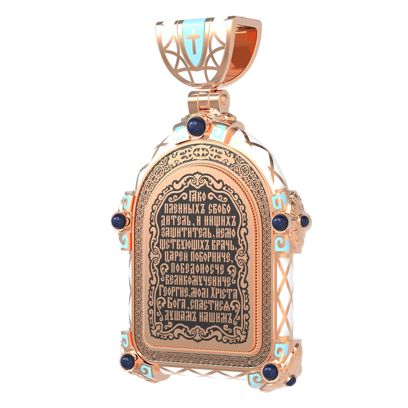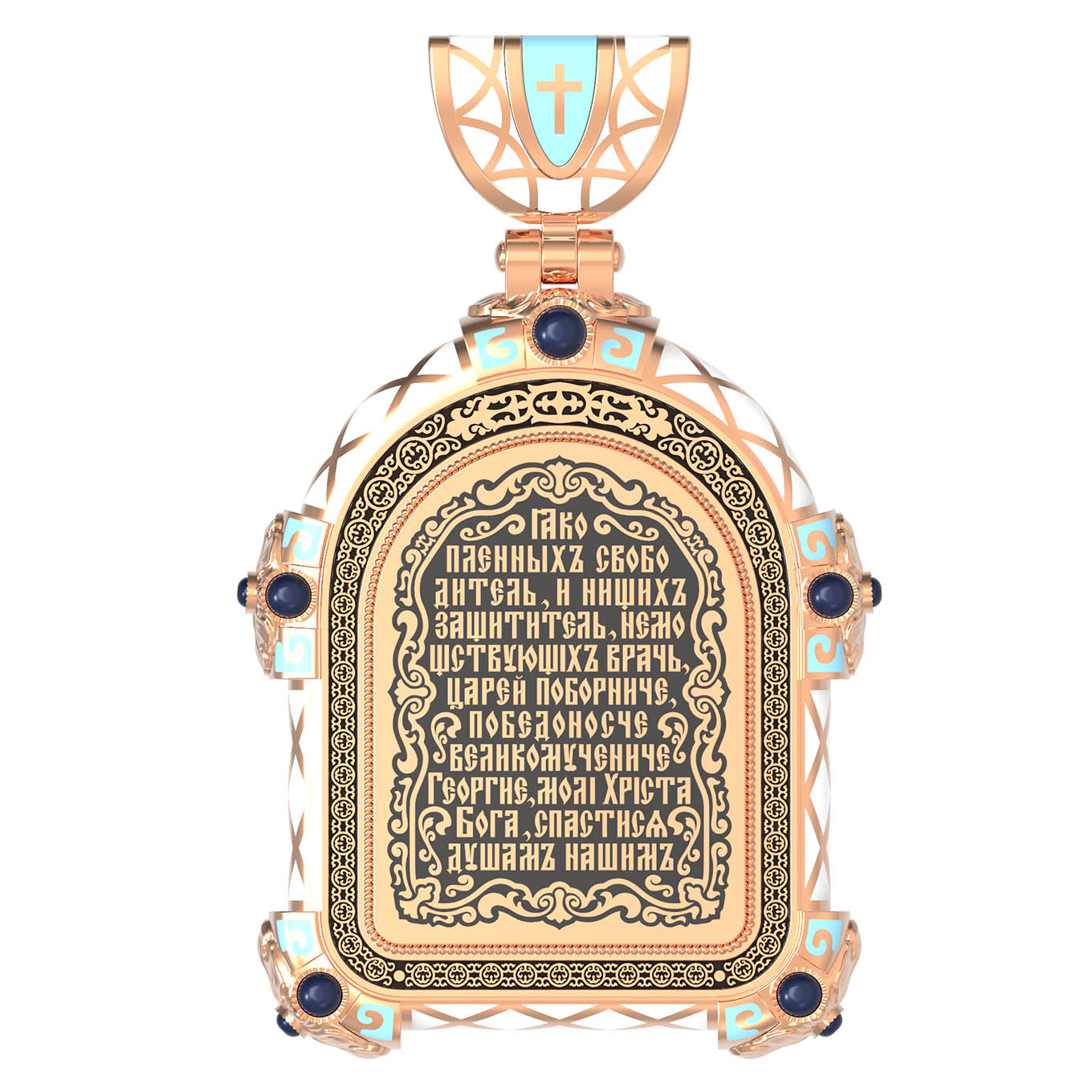 На обороте написана молитва: «Яко пленных свободитель, и нищих защититель, немощствующих врач, православных поборниче, победоносче великому чениче Георгие, моли Христа Бога спастися душам нашим.»