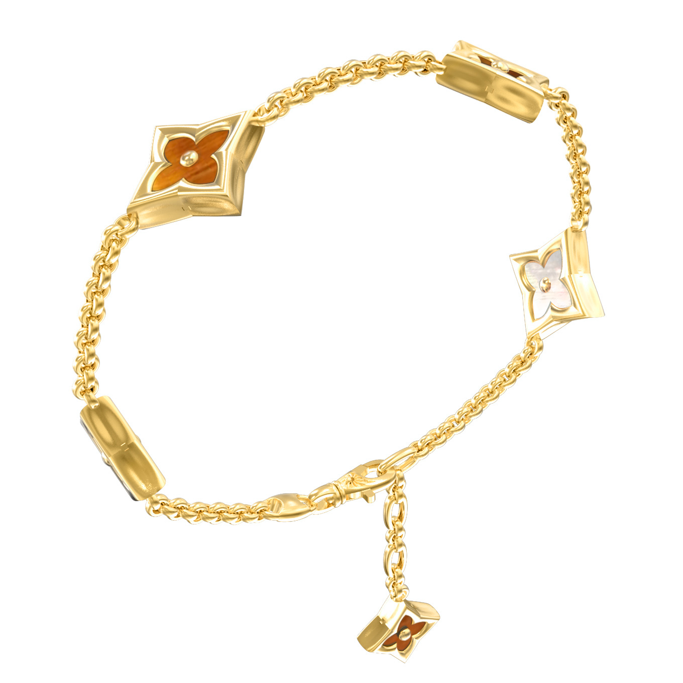 Браслет из лимонного золота c тигровым глазом и перламутром