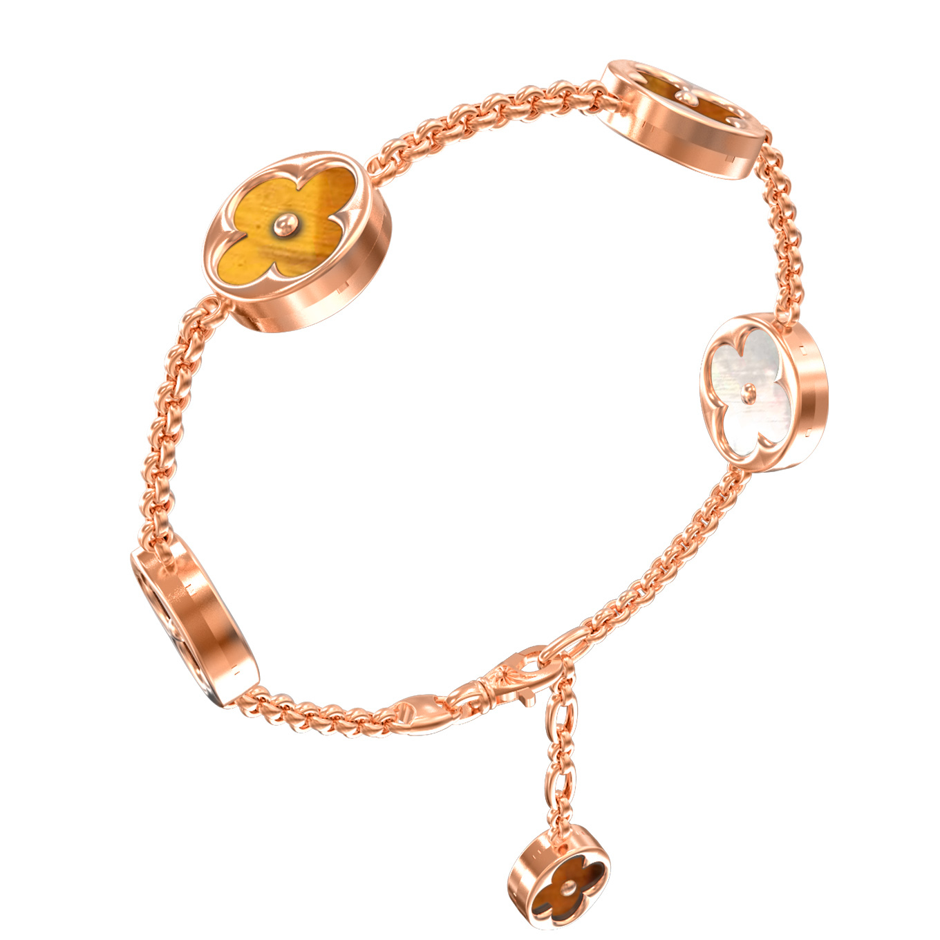 Браслет из золота c тигровым глазом и перламутром