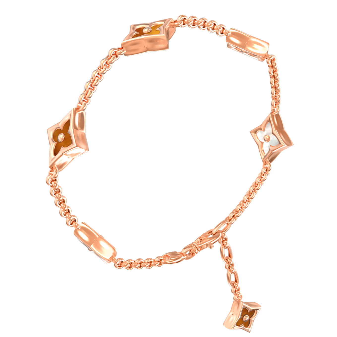 Браслет из золота c тигровым глазом и перламутром