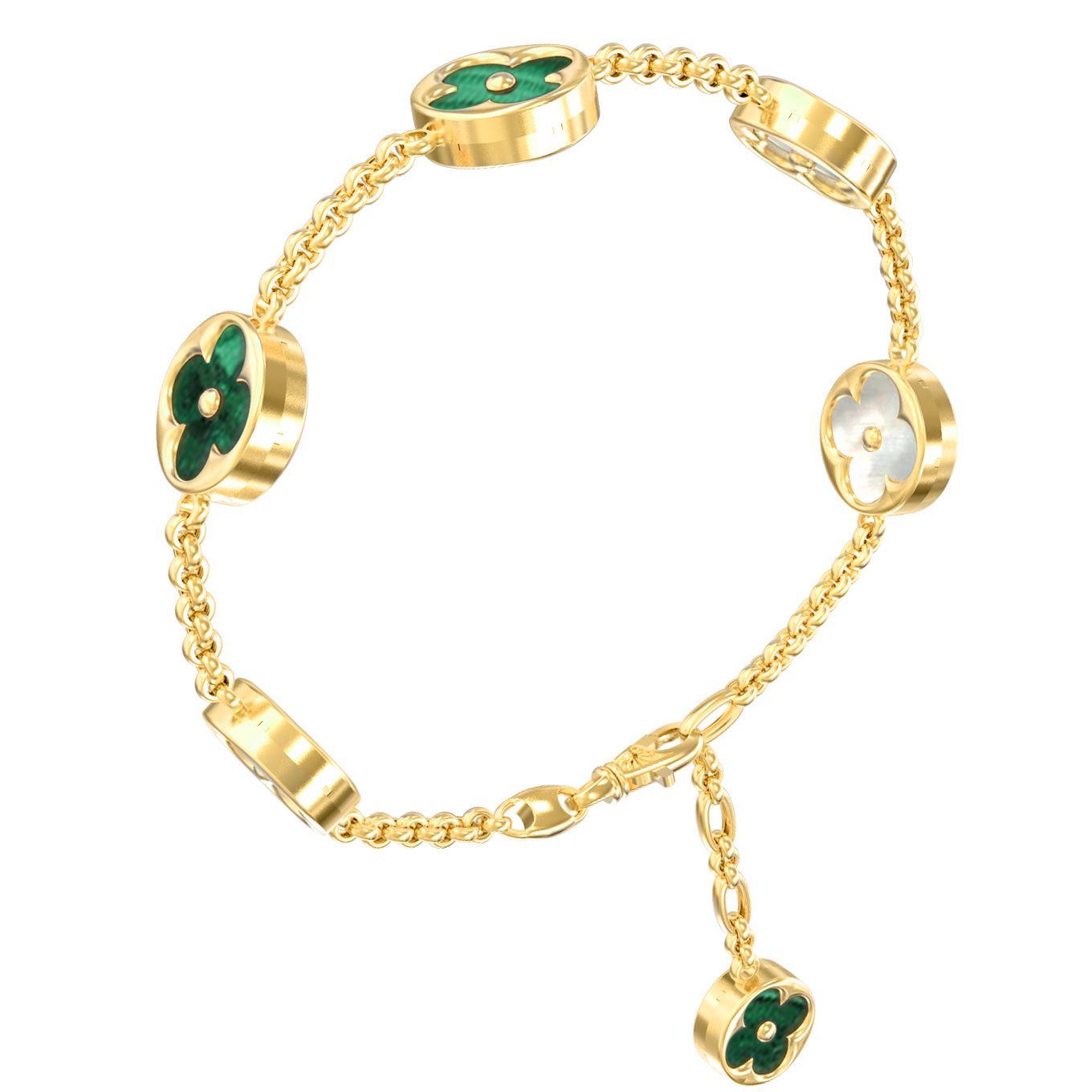 Браслет из лимонного золота c малахитом и перламутром