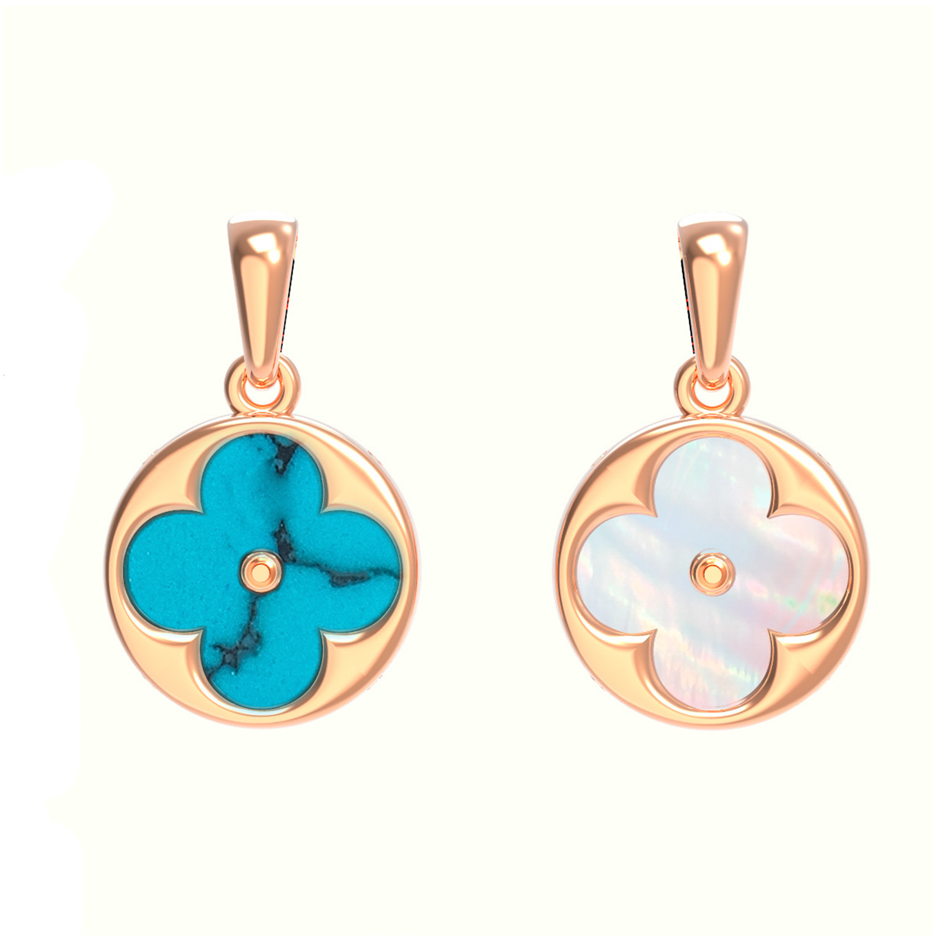 Подвеска из золота c бирюзой и перламутром