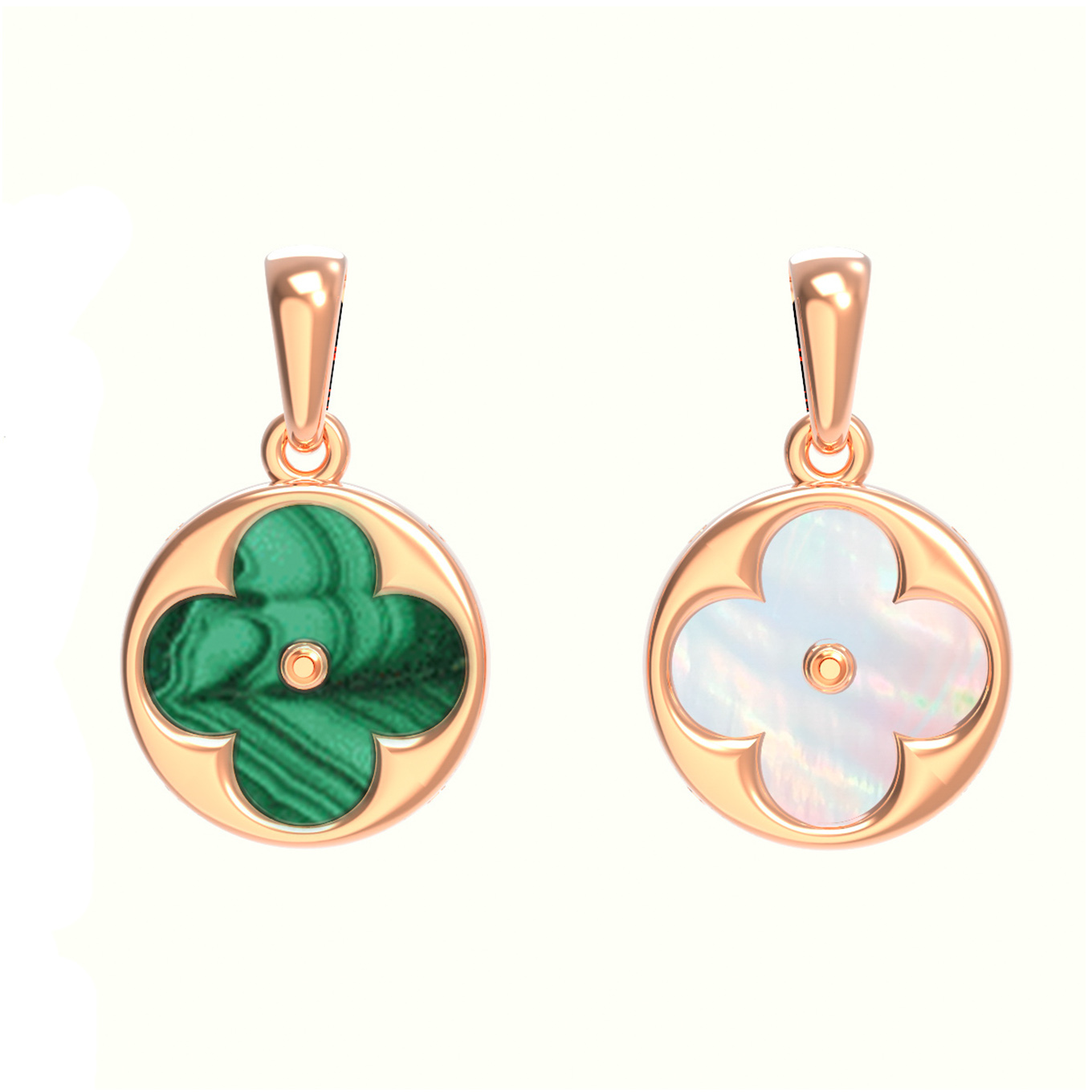 Подвеска из золота c малахитом и перламутром