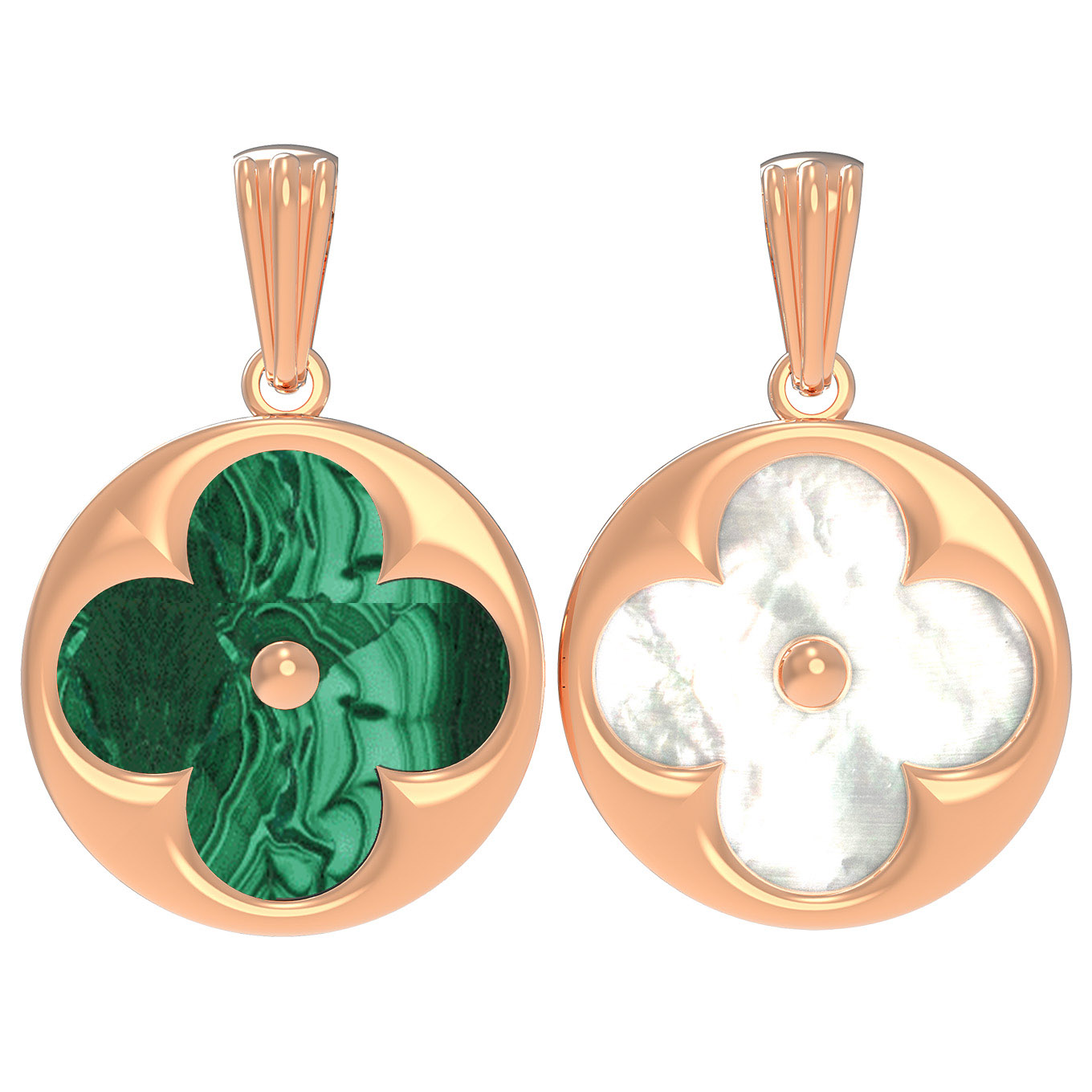 Подвеска из золота c малахитом и перламутром