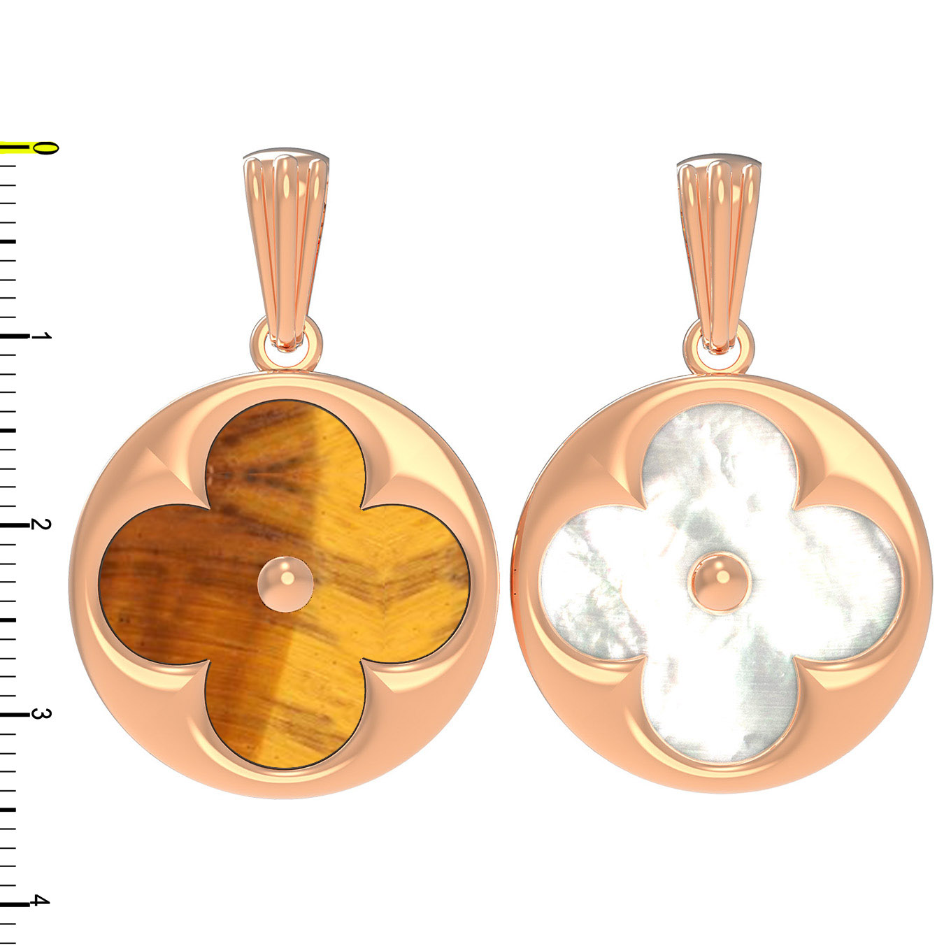 Подвеска из золота c тигровым глазом и перламутром
